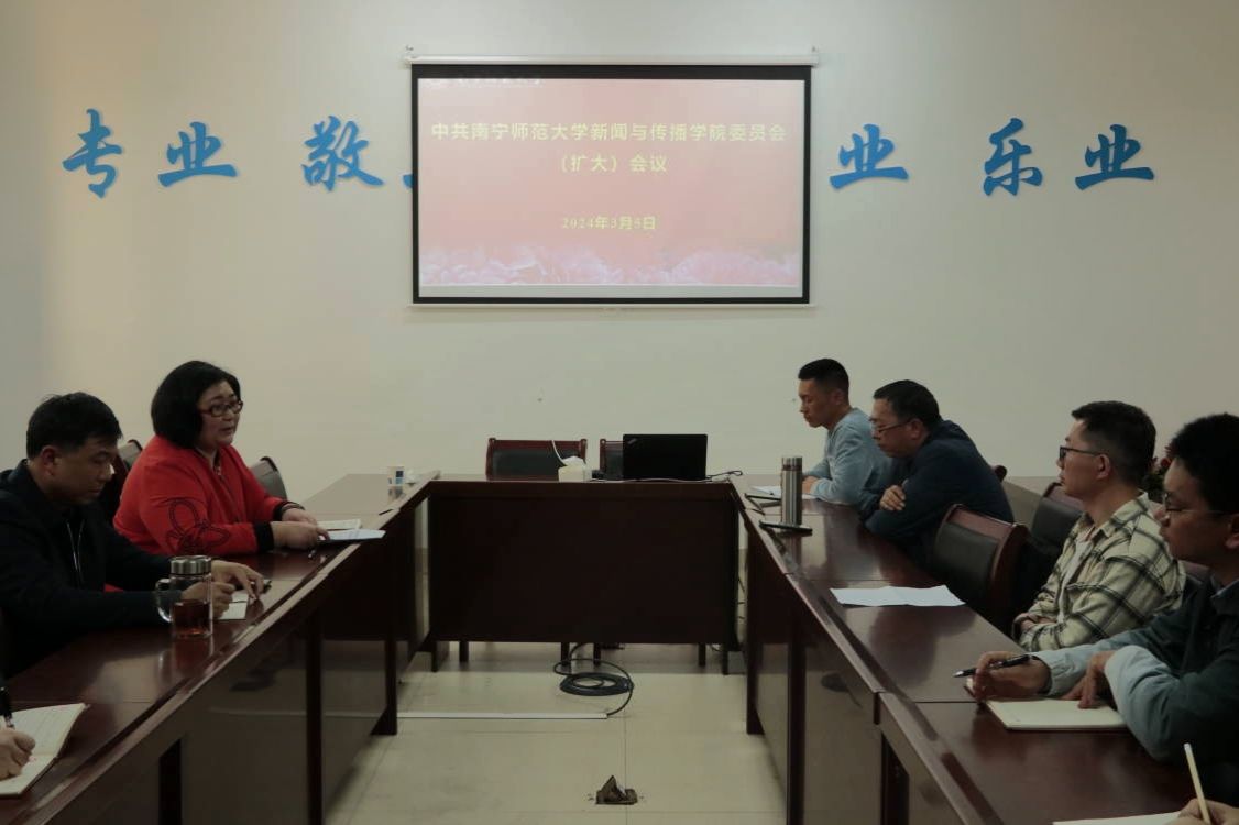 3月5日下午,我院于五合校区理综楼304室召开新闻与传播学院委员会(扩大)会议,学院党委书记聂卉、党委委员及全体党支部书记参会。
