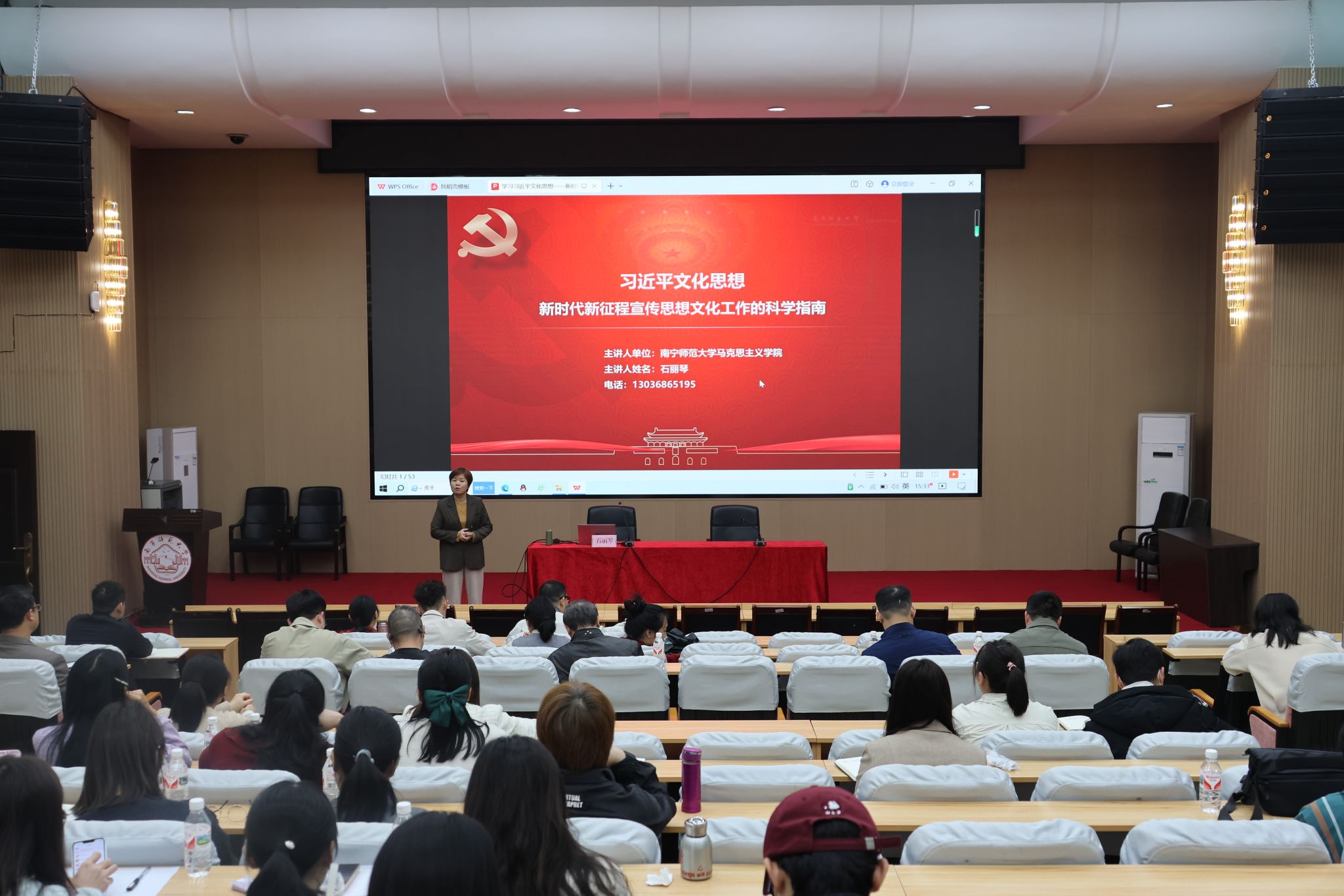 为深入学习贯彻习近平文化思想,进一步提升我校辅导员的专业水平和职业素养,更好担负起新的文化使命,3月12日,学工部(处)特邀了马克思主义学院石丽琴教授在明秀校区文星楼301报告厅为辅导员作主题为《习近平文化思想——新时代新征程宣传思想文化工作的科学指南》专题讲座,学校辅导员、学工部(处)、团委有关学工人员参加了讲座。讲座由学工部(处)副部(处)长何健主持。