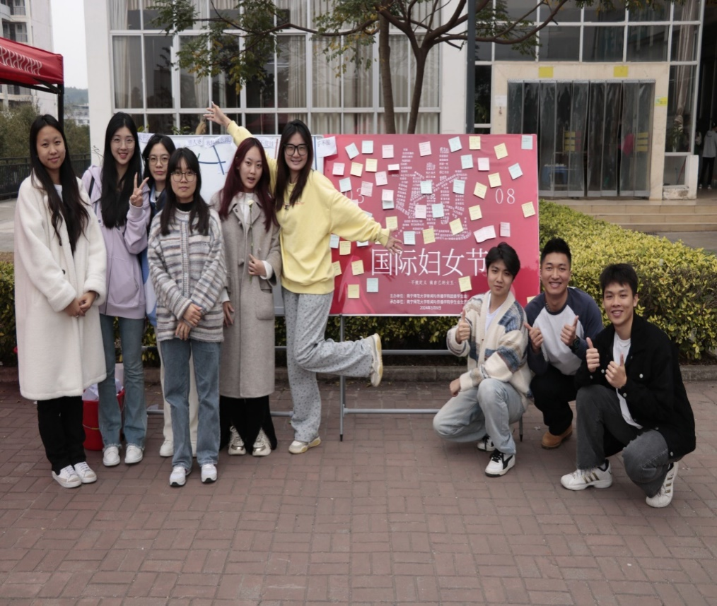 2024年3月8日,在第114个国际劳动妇女节来临之际,为营造浓厚的节日氛围,新闻与传播学院在五合校区食堂门口举行“不被定义,做自己的女王”为主题的妇女节活动。