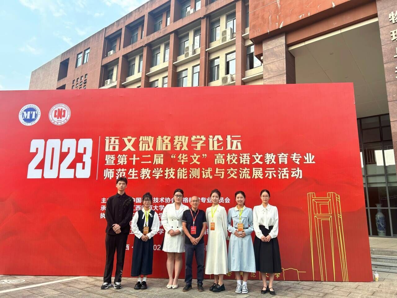 由中国教育技术协会微格教学专业委员会主办、江西师范大学承办,江西师范大学文学院、江西省教育学会读写教育研究分会、江西师范大学《读写月报》编辑部协办的2023年语文微格教学论坛暨第十二届“华文”高校语文师范生教学技能测试与交流展示活动于11月3-6日在江西师范大学瑶湖校区成功举行。来自全国九十多所高校500余名学生参与此次活动。我院黄尤、关卓洋、陆静三名汉语言文学专业的本科生学参加了取得如下成绩: