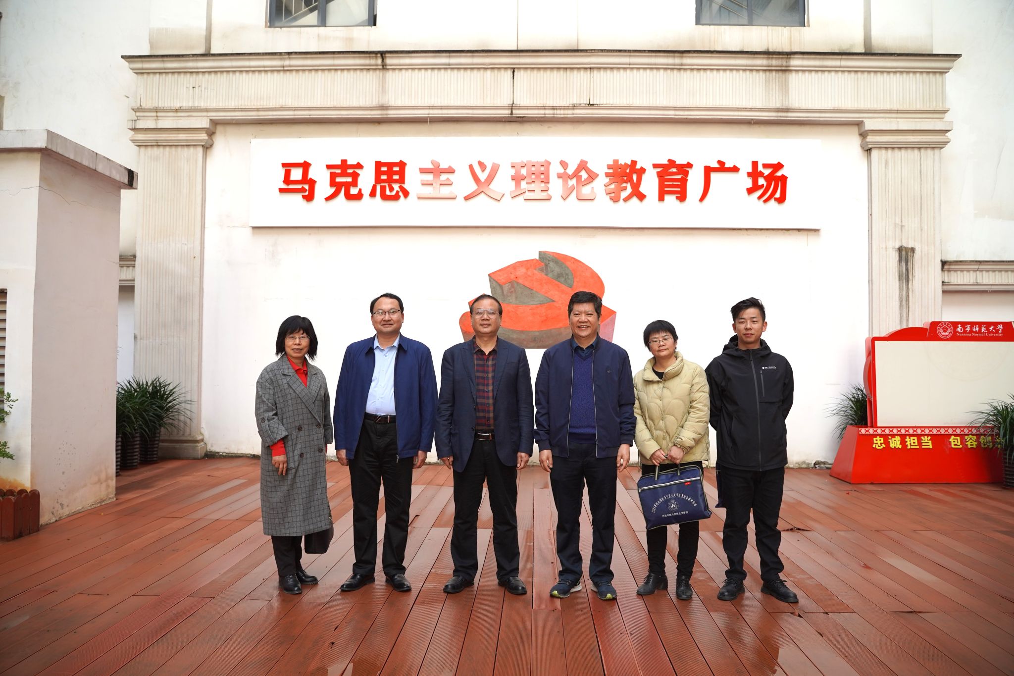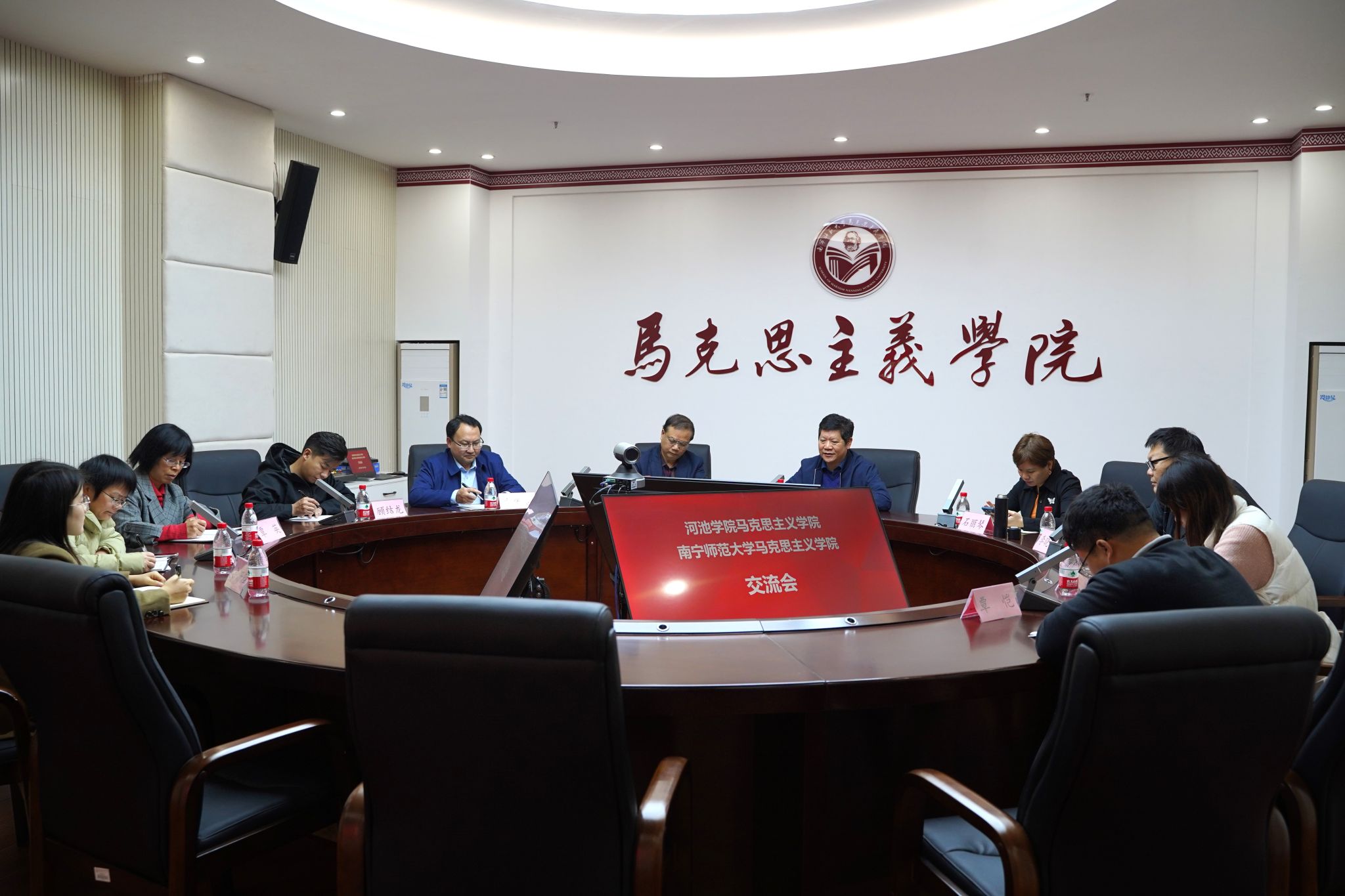 2024年1月16日上午,河池学院马克思主义学院执行院长江洪明、副院长韦宏思一行来到我院交流,我校马克思主义学院院长曾令辉、副院长石丽琴等热情接待,并陪同参观我院党史育人画廊、马克思主义经典著作阅读室、马克思主义理论教育广场、湘江战役虚拟仿真实验中心、科学社会主义发展史教育馆、新媒体实验室等场所和设施。