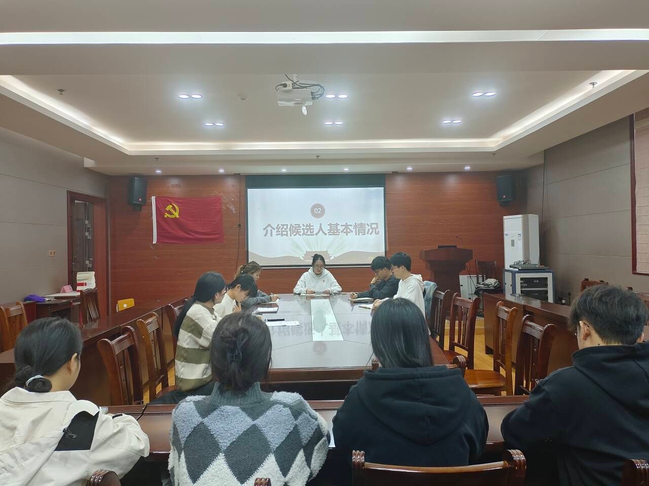 会上,主持人庞西茜副书记宣布会议议题、会议流程和会议纪律。按照有关程序,主持人分别介绍了推荐人选的基本情况、征求意见结果、现实表现情况等,各班级代表对班级民主测评情况等作了补充,支部委员会委员结合各班级代表意见、日常了解的情况分别发表意见,并通过无记名投票表决产生发展对象人选。最终,大会确定陈异娟等7名积极分子成为发展对象,并将按照党员发展程序完成后续工作。