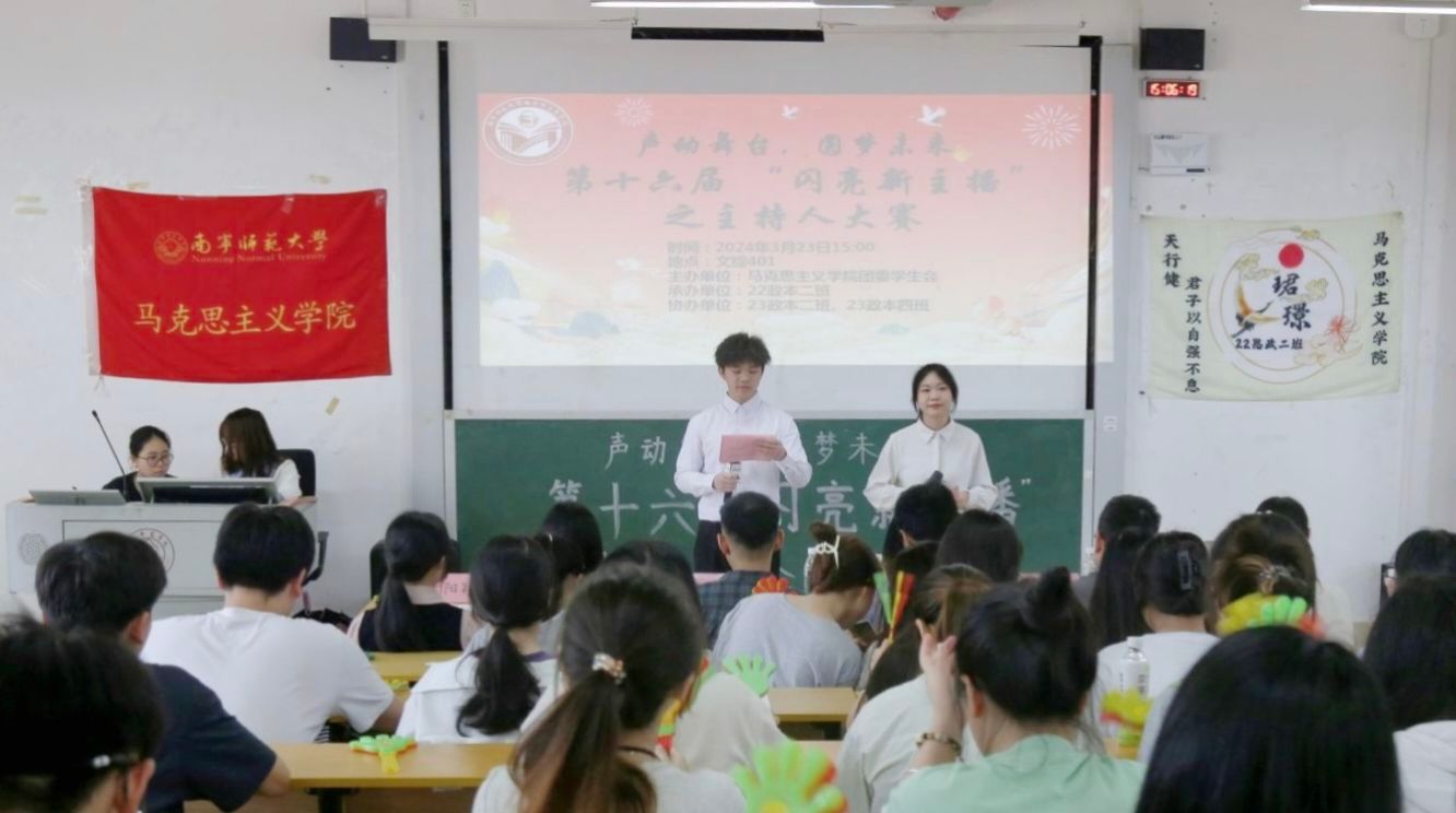 3月23日下午3时,马克思主义学院在文综楼401教室举办了以“声动舞台,圆梦未来”为主题的第十六届闪亮新主播之主持人大赛。