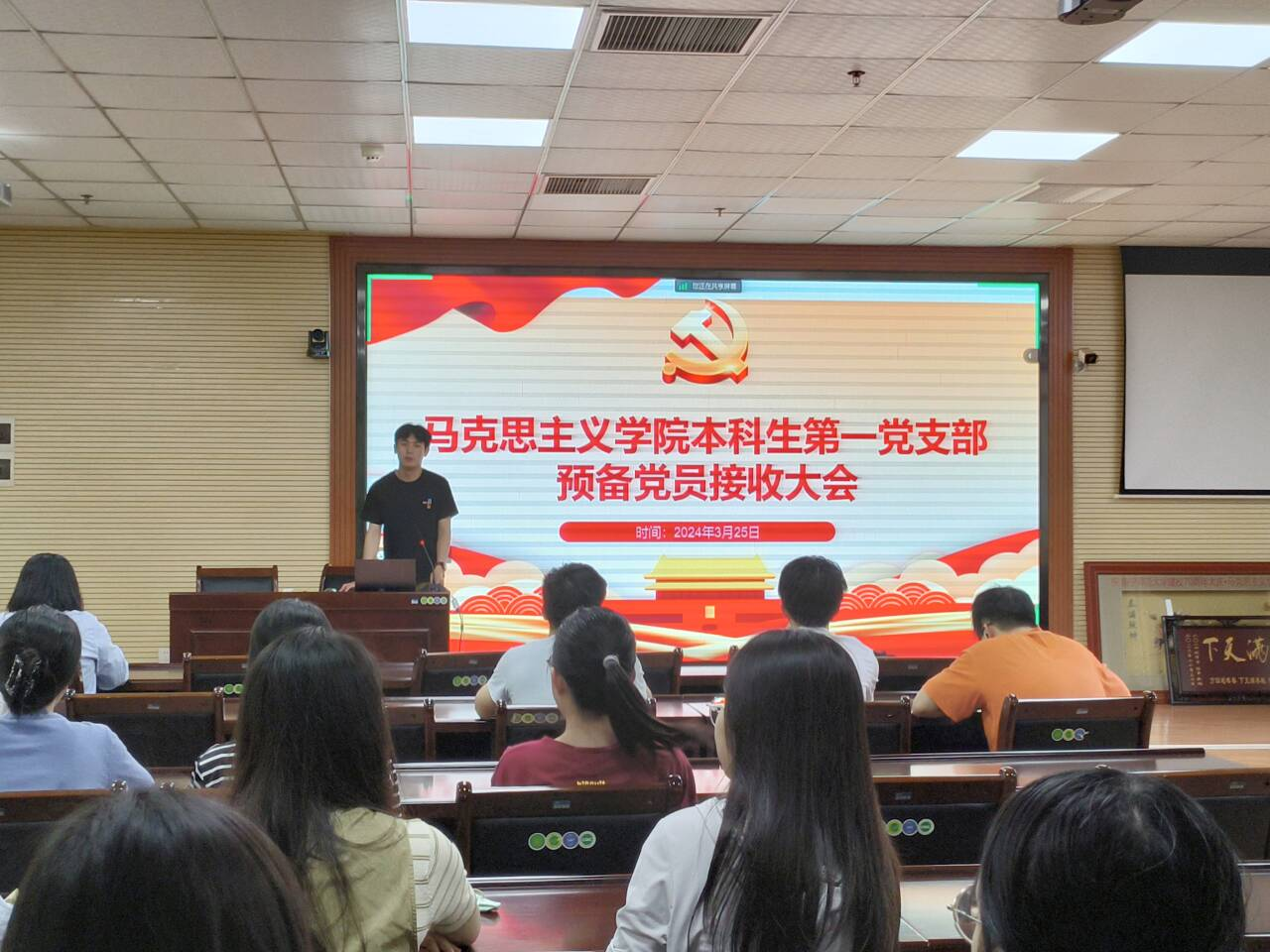 3月25日,马克思主义学院本科生第一党支部在8栋B座215报告厅召开了预备党员接收大会。