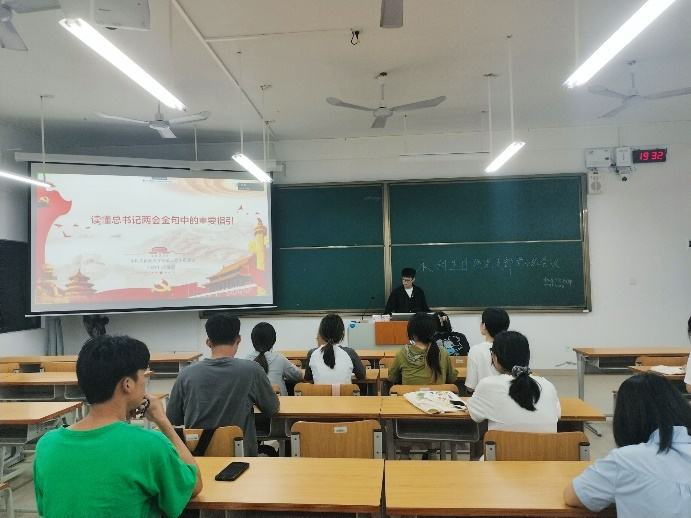 3月26日,本科生自然党支部在武鸣校区实验楼二号楼C104教室召开三月份党小组会议。本次会议主题为“读懂习总书记两会金句中的重要指引”党支部全体党员参加。