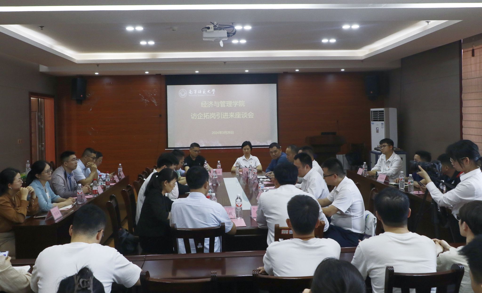 为深入贯彻落实“访企拓岗”专项行动工作部署,精准对接企业用人需求,拓宽毕业生就业渠道和岗位资源,提高学生培养质量,全力促进2024届毕业生更充分更高质量就业,经济与管理学院于3月26日在五合校区文理综合楼理综515召开访企拓岗引进来座谈会。广西钦州临海工业投资集团有限公司党委委员临港石化公司总经理华国红、临海供应链公司董事长兼总经理苏杰、临海贸易公司执行董事兼总经理何大武等和经济与管理学院领导班子、系主任和部分学生代表参与。