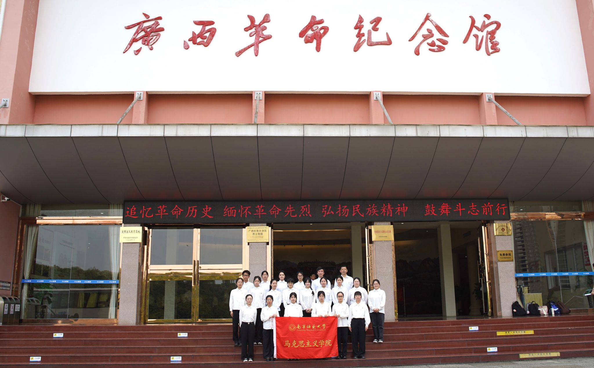 为深入推进“大思政课”工作格局的构建,切实增强思政课的实效性和吸引力,4月2日,马克思主义学院组织2022级思政陶班的同学共30余人赴广西革命纪念馆开展了一场别开生面的“大思政课”实践教学活动。
