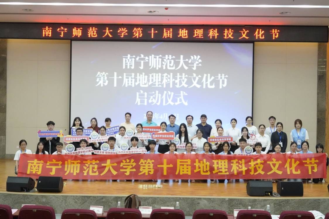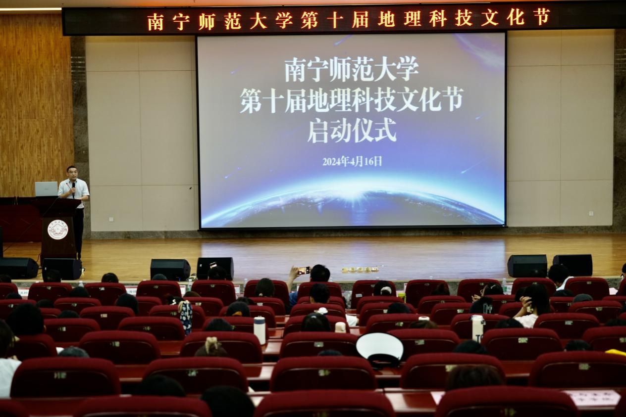 为推进科技创新、积极响应学校号召,切实推动“十大”育人体系的构建,培养学生创新精神和实践能力,4月16日,地理科学与规划学院在武鸣校区图书馆报告厅举办第十届地理科技文化节启动仪式。学校学生工作部(处)副部(处)长何健、校团委副书记梁秋、创新创业学院副院长韦良、地理科学与规划学院领导班子成员、环境与生命科学学院党委副书记以及北部湾环境演变与资源利用教育部重点实验室/地理与海洋研究院、地理科学与规划学院、环境与生命科学学院、自然资源与测绘学院师生代表共计300余人参加了本次活动。