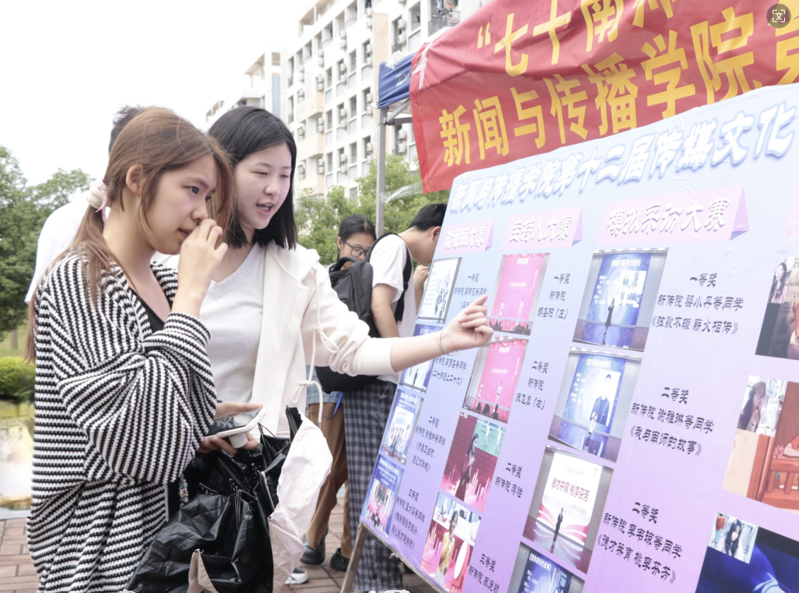 为展示第十二届传媒文化节学生优秀作品,丰富校园文化活动。4月23日中午,我院于五合校区食堂一楼门口进行第十二届传媒文化节成果展示。