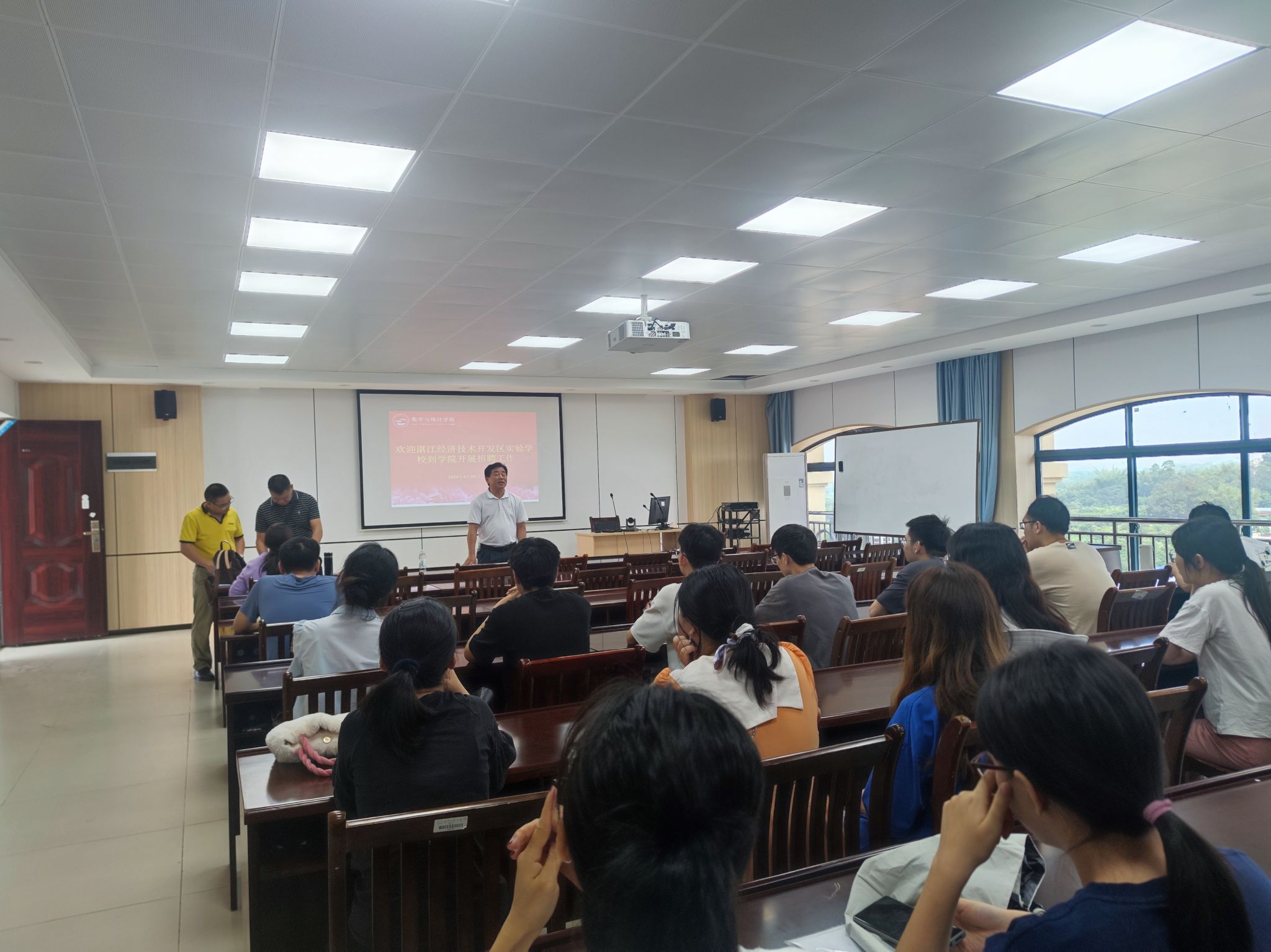 4月25日,数学与统计学院联合湛江经济技术开发区实验学校在实验1-A201教室举办专场招聘会。学院院在校部分毕业生参加此次招聘会。