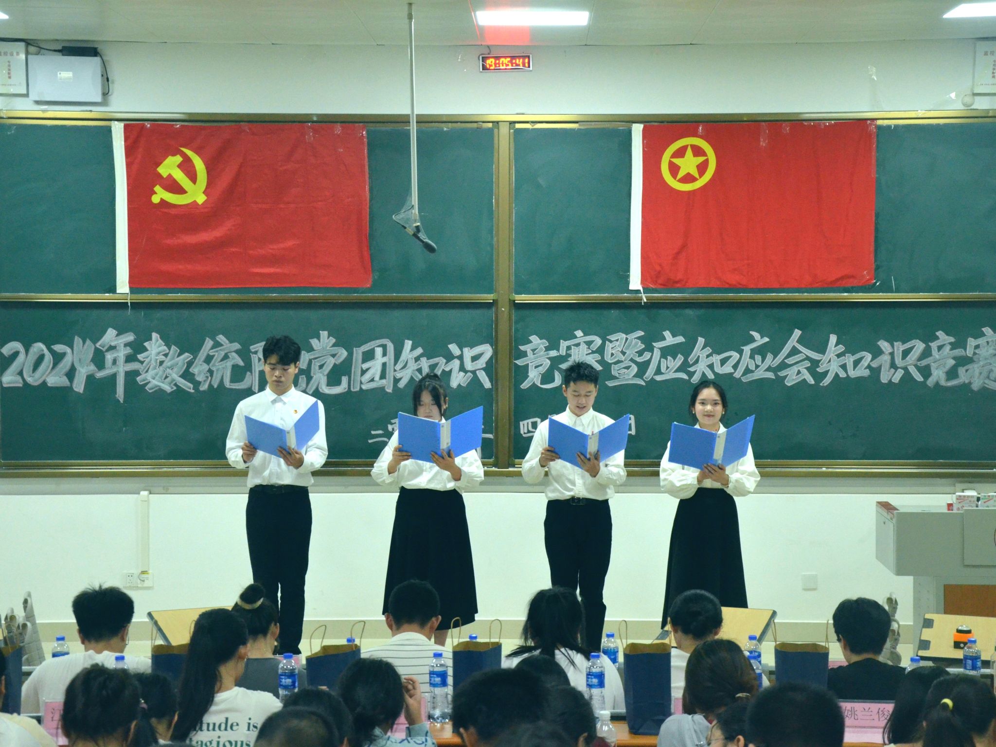 为引导同学们认真学习党团知识,加深对本科教育教学评估应知应会知识的掌握,4月27日晚,数学与统计学院在武2-109教室举办以“党团领航吾辈砥砺前行,教评知新青年奋斗不息”为主题的党团知识暨本科教育教学审核评估应知应会知识竞赛决赛。本次比赛由该院辅导员何振飞老师、学生党支部、团委学生会、各班学生代表参加此次比赛。