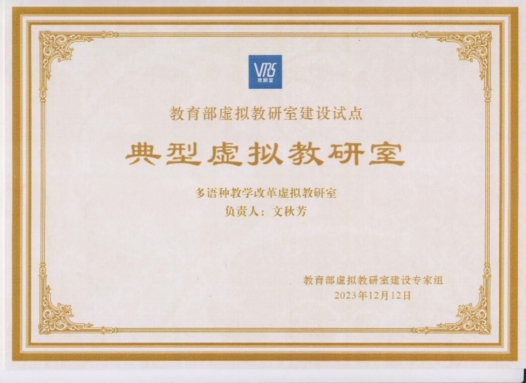 该虚拟教研室结构化程度高、任务强度大,自2022年3月启动至2024年2月结束,团队须每周自主研讨若干次、每两周完成至少1次跨校分组合作任务、每月参加至少1次虚拟教研室全体研讨(每次历时4小时)并提交教研作业至少2次。外国语学院团队在业余时间里自觉投入大量时间和精力,克服所有困难风雨无阻地全勤出席研讨活动,优质完成教学理论学习及研讨、教学实践与反思、教研写作与修改等各项任务。促研专家多次承认,个人在该虚拟教研室的学习和科研任务量相当于攻读了半个博士学位。因其在外语教研领域贡献卓著,该虚拟教研室2023年12月荣获教育部表彰并被授以“典型虚拟教研室”称号(全国657个各专业虚拟教研室中仅50个入选)。