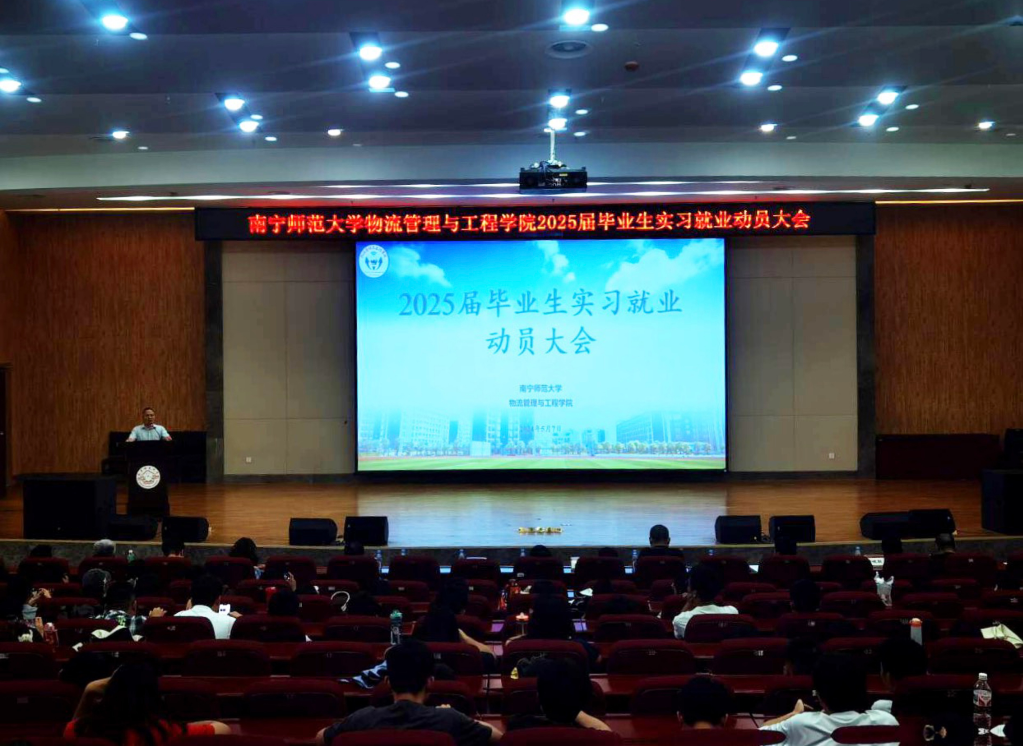 为了扎实做好2025届毕业生的实习就业工作,促进学生对所学知识和技能进行实践运用、总结和深化,引导学生明确认识专业实习的目的和意义,5月7日下午,物流管理与工程学院在武鸣校区图书馆报告厅召开了2025届实习就业动员大会,学院党委书记陈兵,院长汪德荣,党委副书记黄宇,副院长刘新全、蔡宏果,各系主任、21级各班班主任及学院团委书记、辅导员,2025届等全体学生参加了会议,会议由黄宇副书记主持。