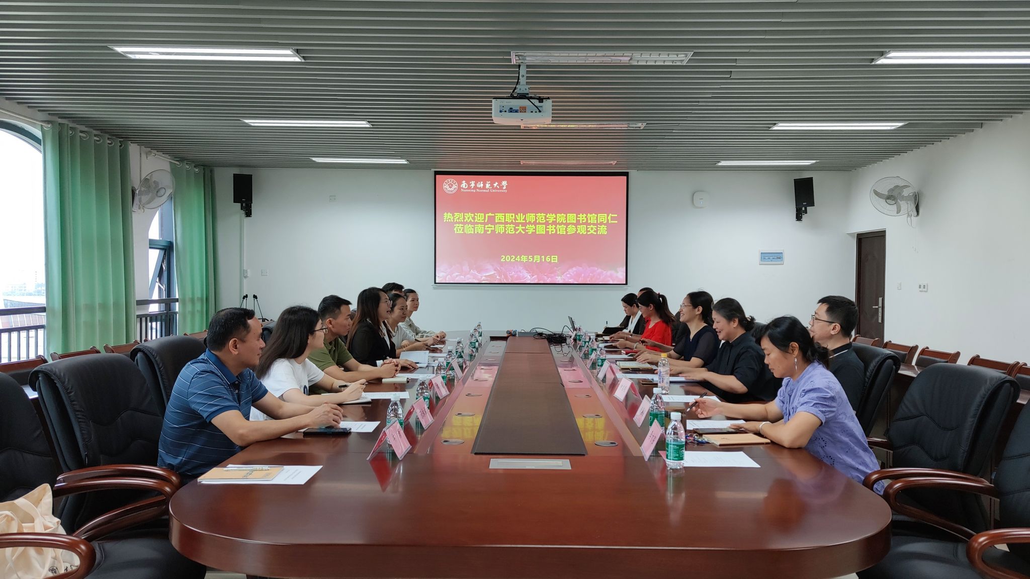 5月16日上午,广西职业师范学院图书馆馆长向媛秀一行8人到我校武鸣图书馆参观交流。我校图书馆馆长叶佩珍、副馆长玉丽东及相关人员热情接待了来访同仁并进行了座谈交流。