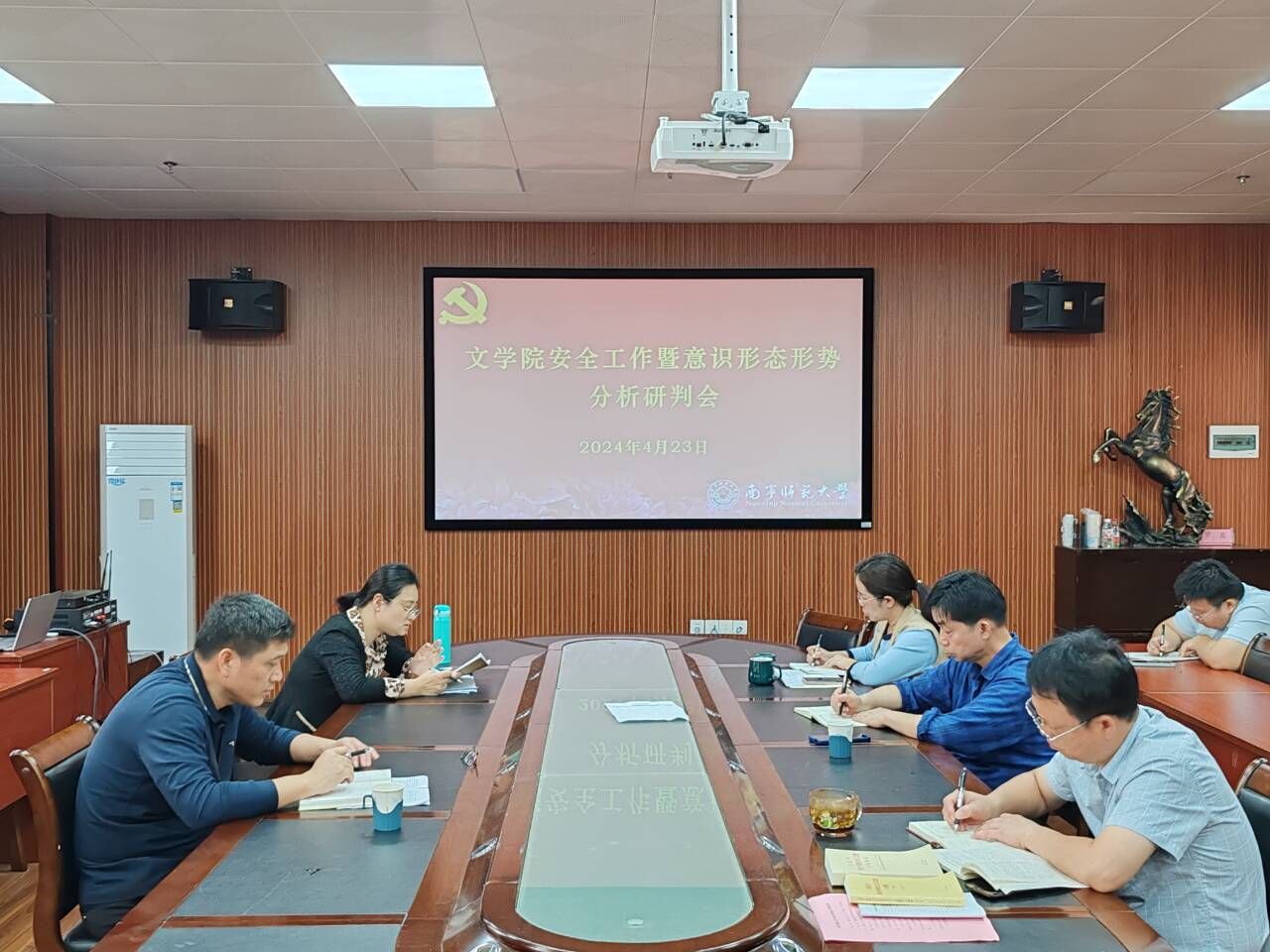 为贯彻落实学校安全工作暨意识形态形势分析研判会精神,4月23日上午,文学院在五合校区理楼404会议室召开安全工作暨意识形态形势分析研判会。文学院党委委员与教师代表参会,会议由文学院党委书记旷晓霞主持。