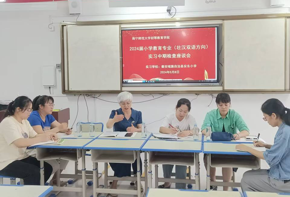 5月6日至10日,初等教育学院壮汉双语系组织领导相关老师深入各个实习学校实地走访调研,圆满完成本学期的实习中期检查任务。