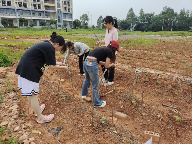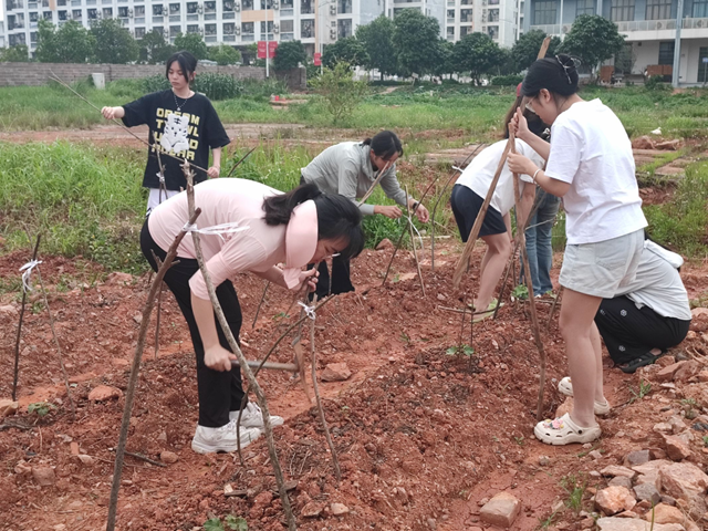 为进一步增强大学生的劳动意识,促进大学生全面发展,教育科学学院本科生第一党支部第二批参与劳动实践的党员同志在支委吴文献同志的带领下于5月16日在支部的劳动教育实践基地共同开启了“搭架护苗”行动。