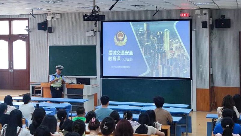为普及交通法律法规,规范大学生的安全出行,培养和提升学生应对突发公共事件的逃生避险、自救互救、应急救援意识和能力,5月17日下午,南宁交警一大队走进我校,为我校国际教育学院近一百名师生讲授了一堂精彩的交通安全知识课。