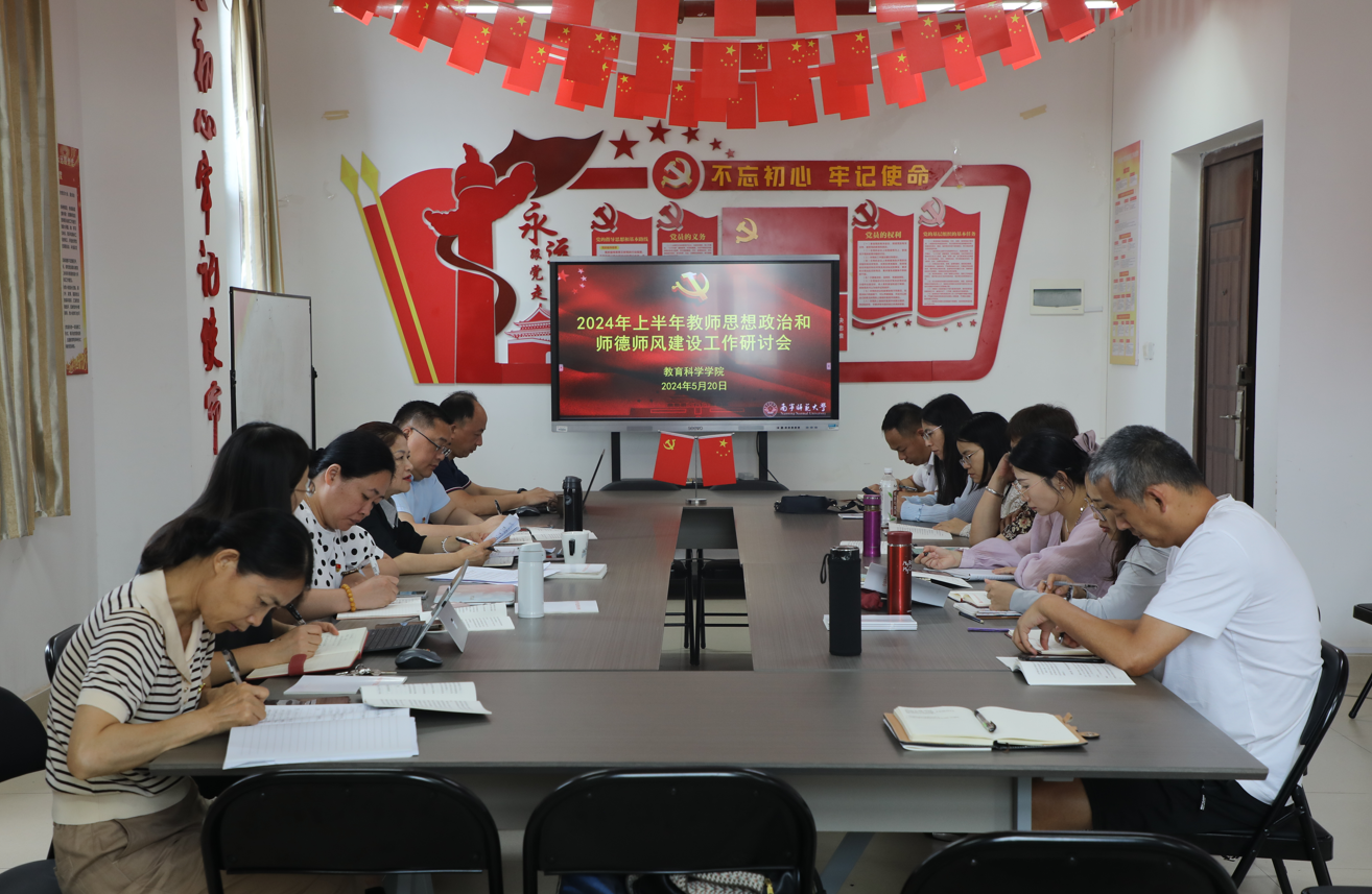 为深入学习贯彻习近平总书记重要指示精神,进一步加强师德师风建设,提升教师的职业道德素养,5月20日,教育科学学院在五合理综1005室召开2024年上半年教师思想政治和师德师风建设工作研讨会。教育科学学院党委领导班子成员、党委、纪委委员、支部书记参加会议。会议由教育科学学院党委书记庞芳主持。