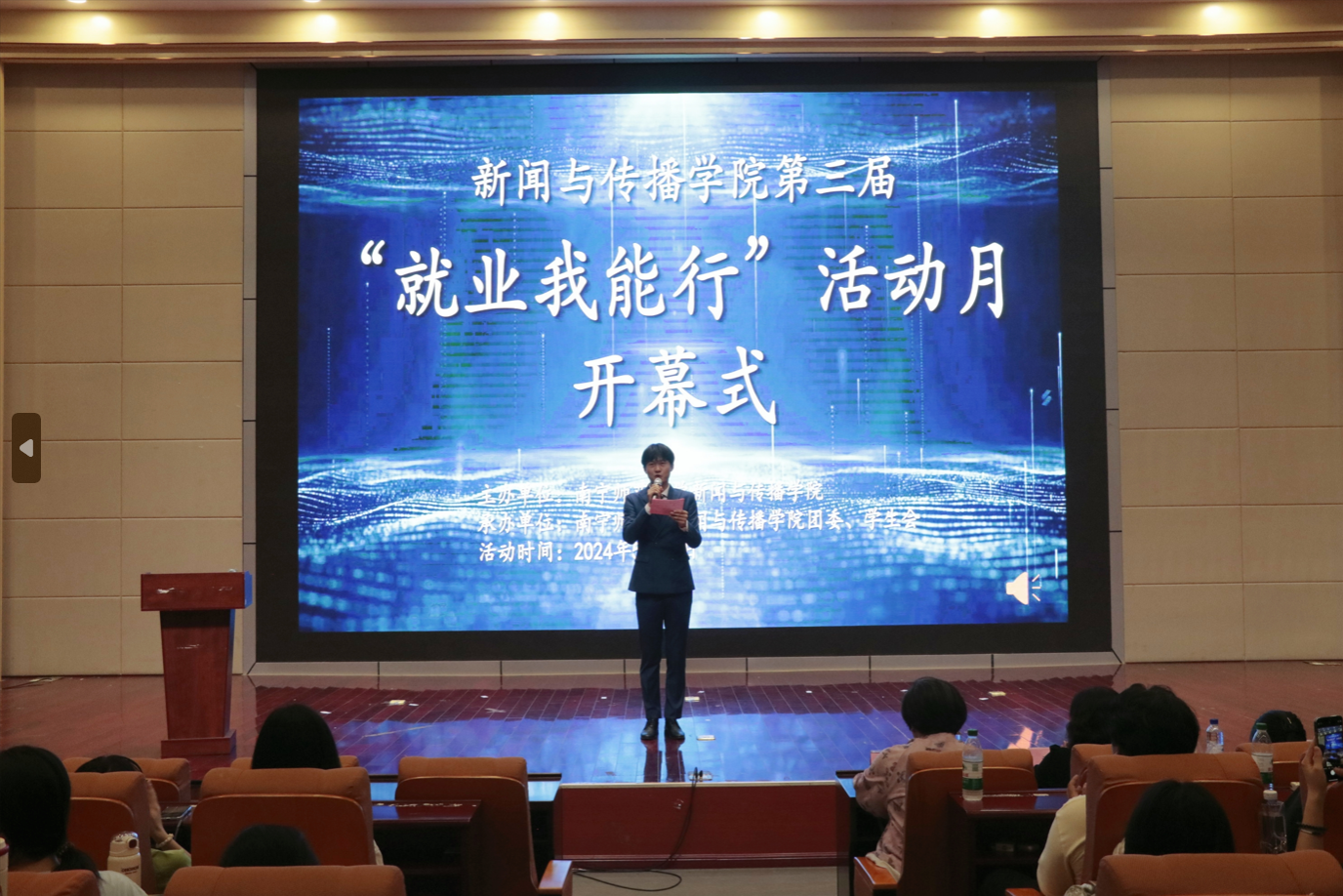 5月12日晚,新闻与传播学院在文综114报告厅举行了“就业我能行”活动月开幕式。出席开幕式的嘉宾有学院党委书记聂卉、党委副书记黄敏、新闻系主任林秀梅、广播电视系主任陈秋凌、学工办辅导员周展林以及优秀校友代表。