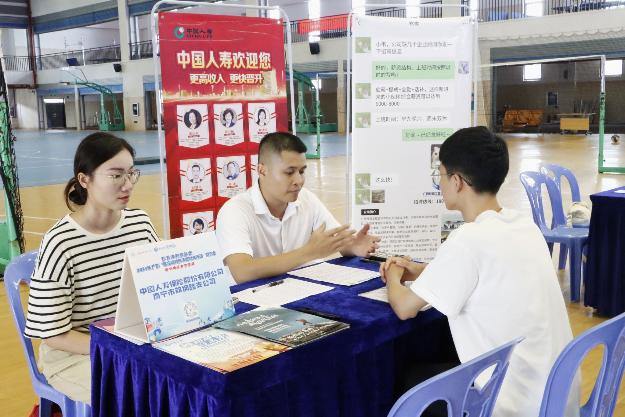 为了扩宽毕业生就业渠道,不断提升学生就业质量,扎实推进毕业生就业工作,5月10日,经济与管理学院在学校招生就业处的指导下,联合广西壮族自治区工商联、广西营服务业发展交流会、广西锦绣前程人力资源有限公司等在五合校区体育馆举办了百日冲刺促就业2024广西“民企高校携手促就业行动”双选会,经济与管理学院、物流管理与工程学院、自然资源与测绘学院、美术与设计学院部分领导和老师到双选会现场参加活动。