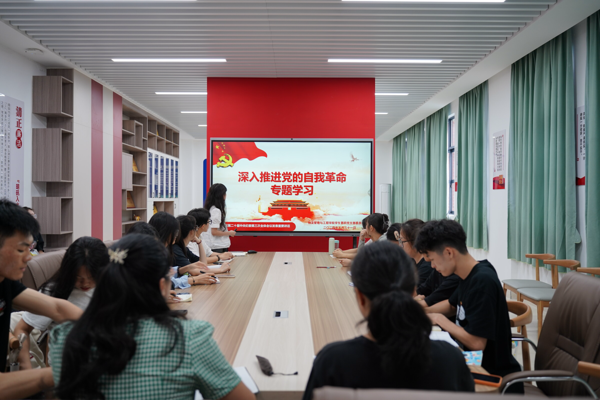 5月31日下午,物流管理与工程学院学生第四党支部在武鸣校区地化楼C307党员活动室开展《深入推进党的自我革命》专题学习交流会。支部全体党员参会,本次会议由支部副书记李雅坤同志主持。