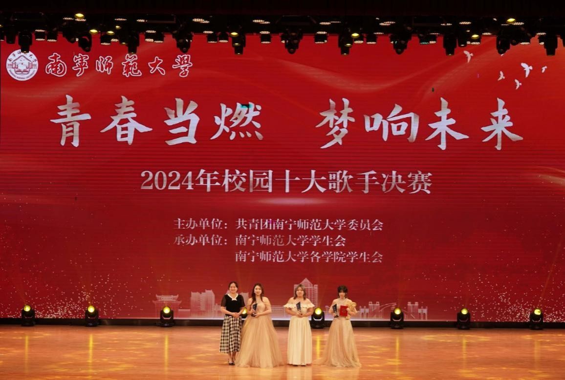 5月12日晚,南宁师范大学2024年“青春当燃,梦响未来”校园十大歌手决赛在武鸣校区音乐楼1号报告厅拉下帷幕,新闻与传播学院23新传专硕的陈紫萱同学和22播主班的庞雯楣同学凭借出色的表现分别荣获冠军和季军。