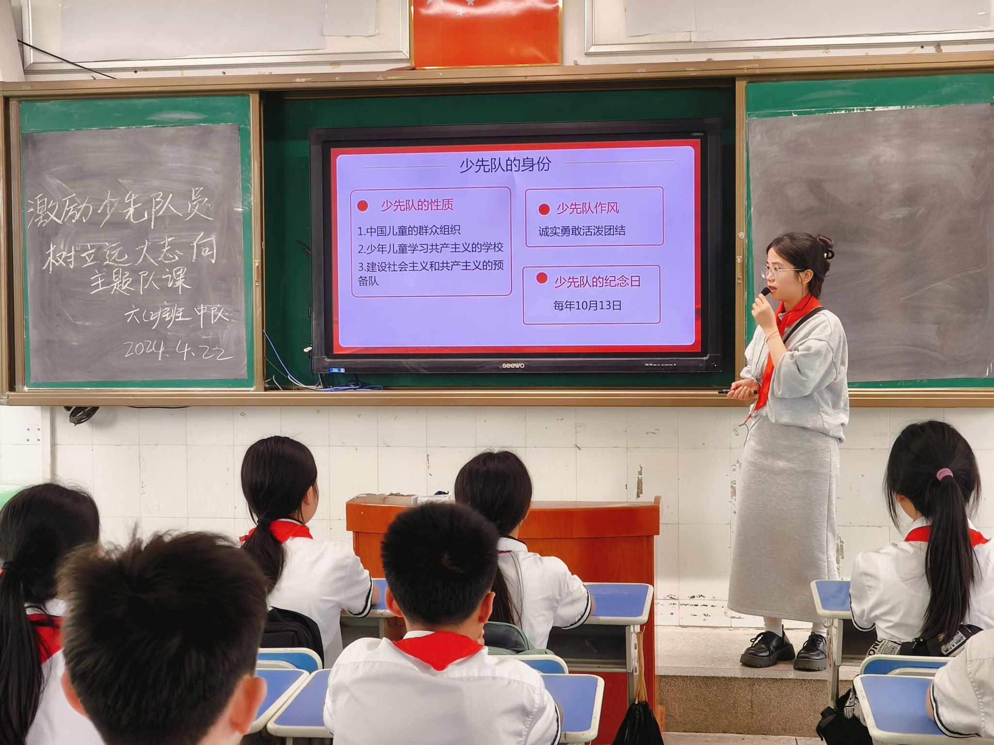 仙葫学校实习生彭阅林给学生上队课