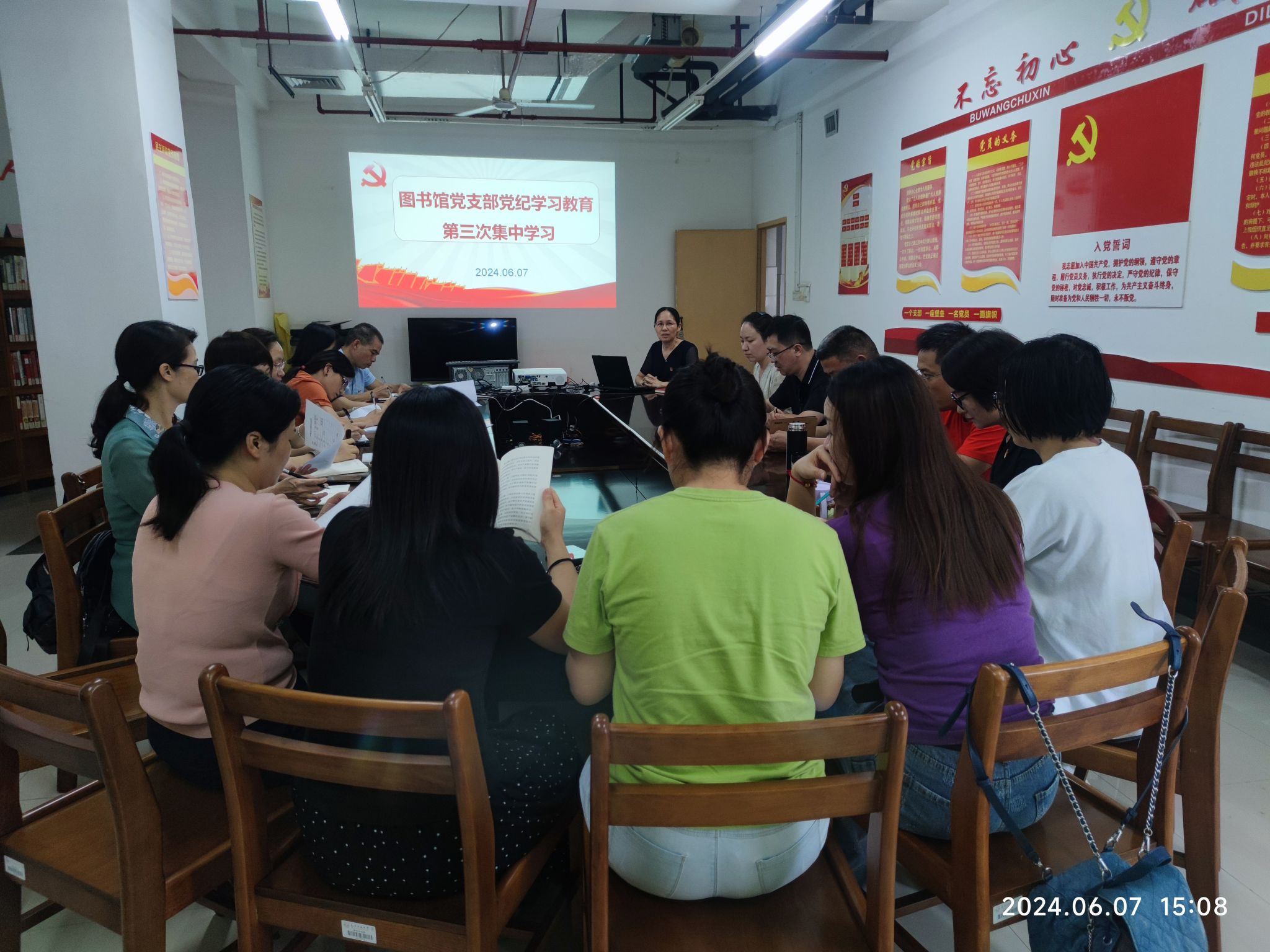 6月7日下午,图书馆党支部在明秀馆11楼党员活动室开展了党纪学习教育第三次集中学习。全体党员及发展对象参加了会议。