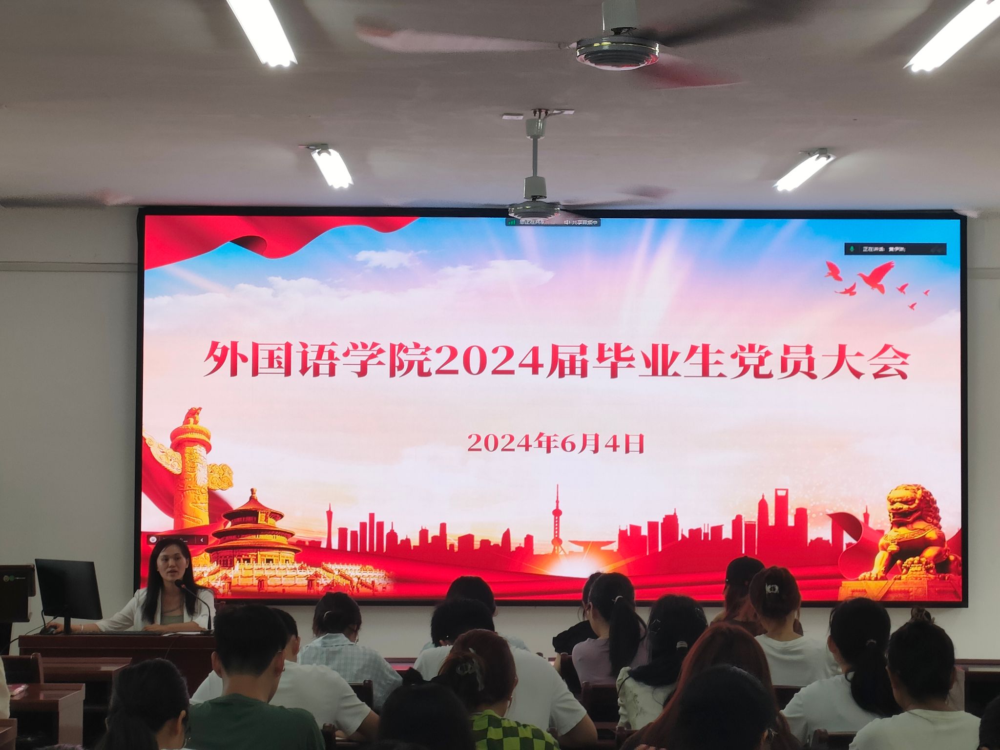 为了进一步加强毕业生党员的教育管理,确保毕业生党员在离校之际能够顺利转接组织关系,外国语学院于2024年6月4日上午在实验楼1B-515会议室召开2024届毕业生党员大会,会议由外国语学院学工办蔡梓晴老师主讲。
