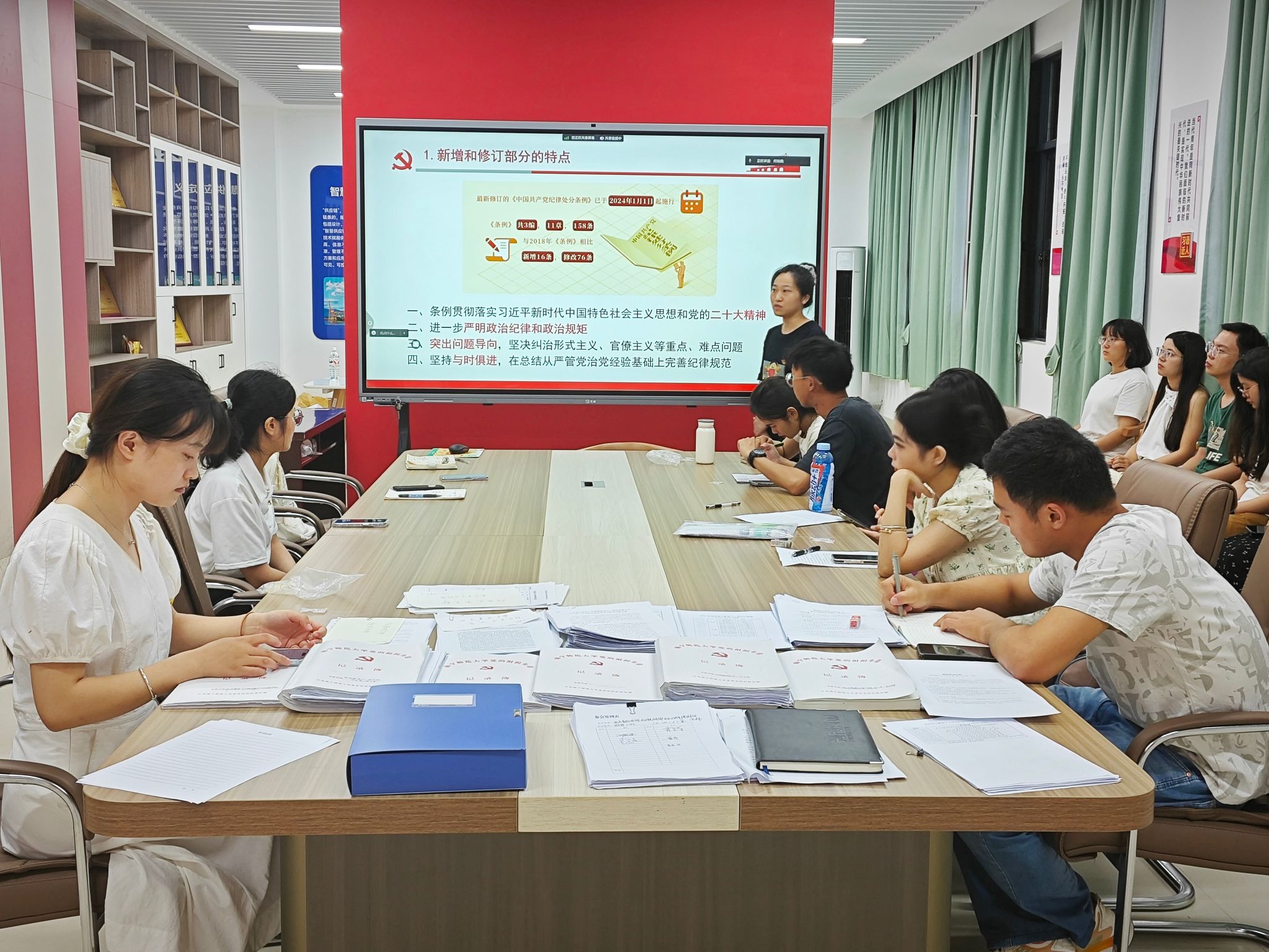 6月13日晚,物流管理与工程学院研究生党支部在武鸣校区地化楼C307党员活动室集中开展党纪学习教育的专题学习。此次专题学习的主题是“学习《中国共产党纪律处分条例》修订精神,深入推进新时代党风廉政建设和反腐败斗争”。支部全体党员参会。专题学习由支部副书记梁小平同志主持。