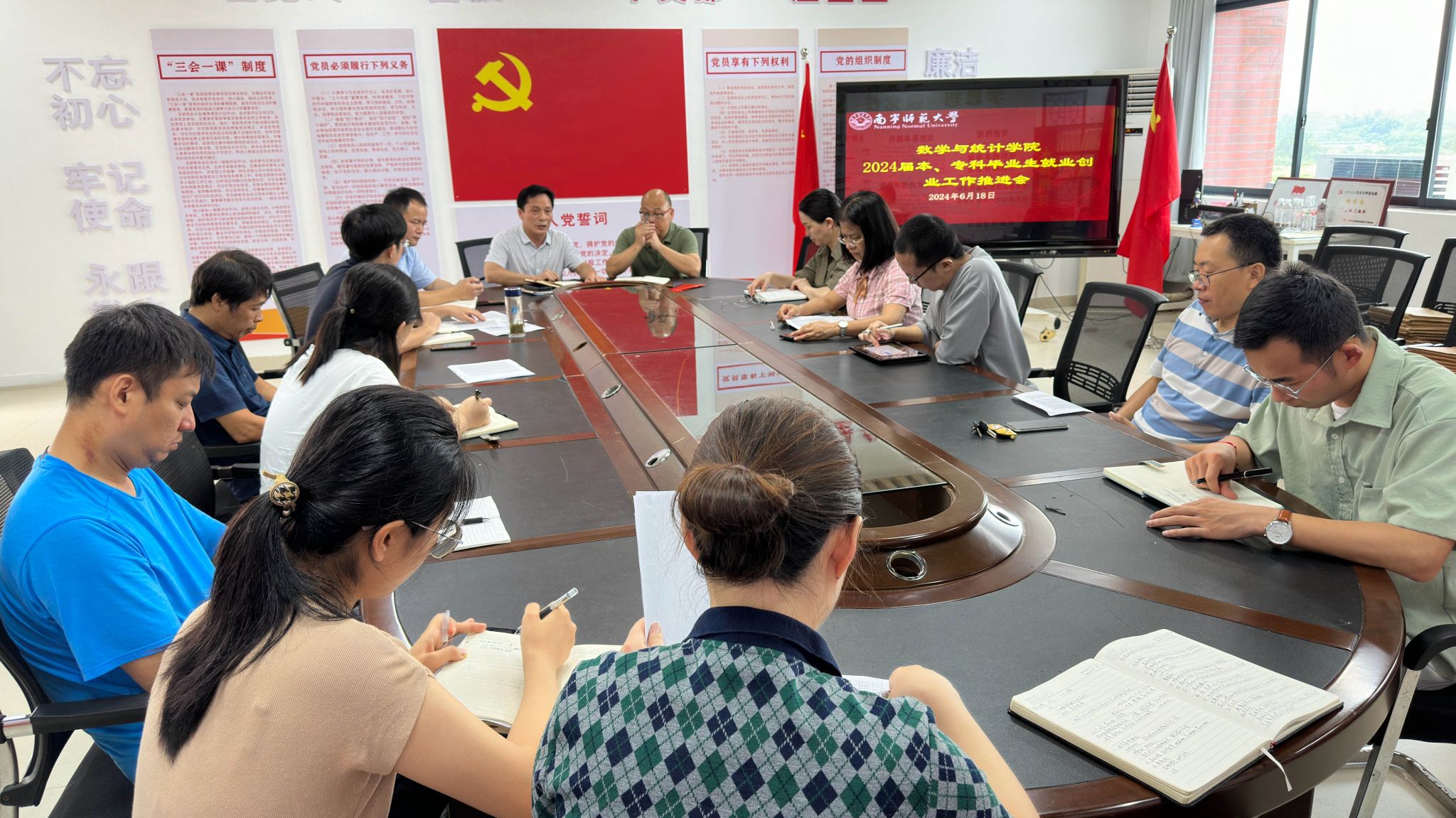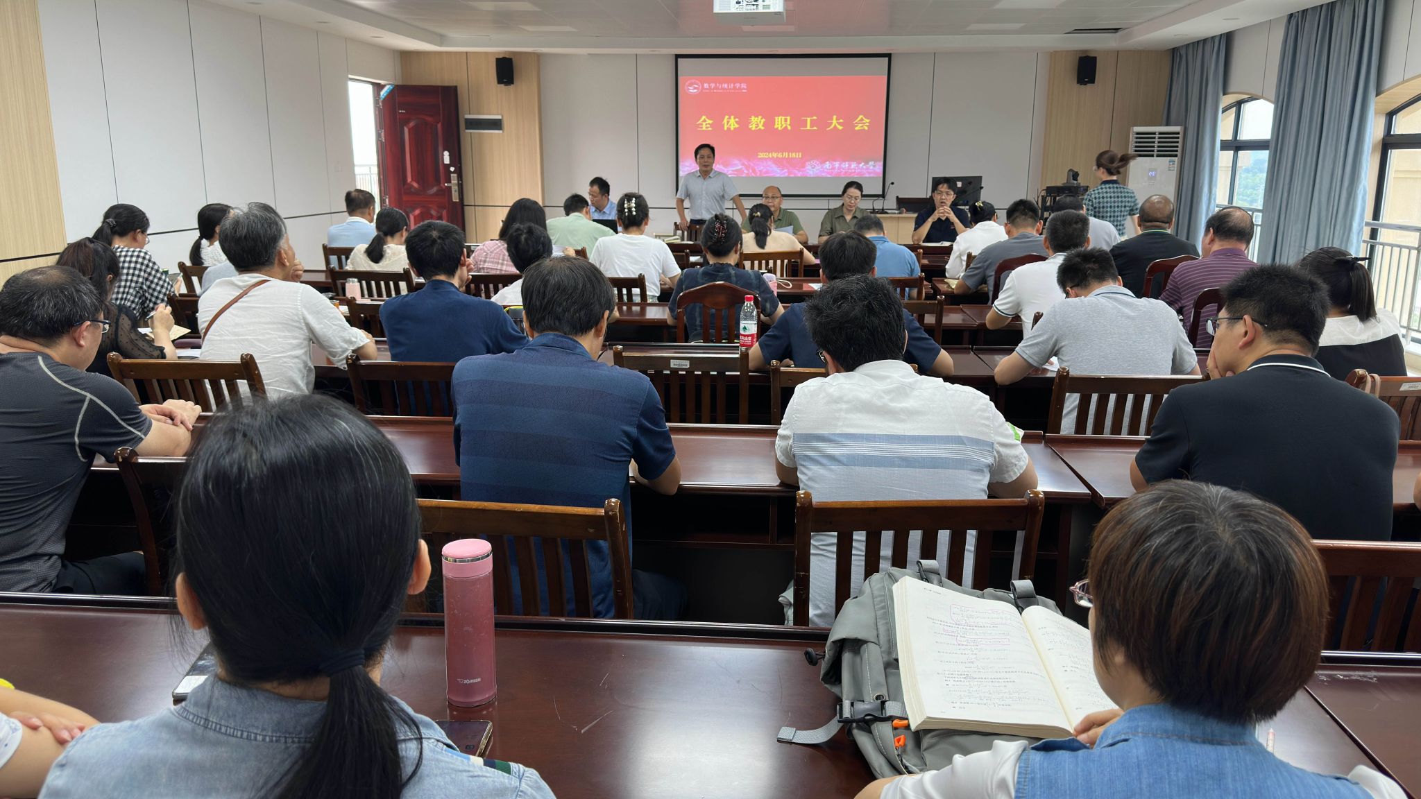 6月18日,数学与统计学院召开全体教职工大会暨第四次就业工作推进会,该院领导班子、硕士研究生导师、毕业班班主任、全体专任教师、行政教辅人员参加了会议,会议由党委书记余敢才主持。