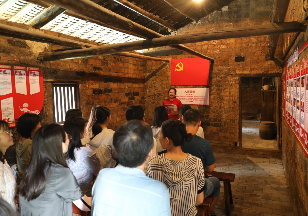 走进革命老区,重温峥嵘岁月。6月22日上午,党员同志们来到了梧州市长洲区平浪村红色教育基地,平浪村是广西最早在共产党领导下开展农民运动的革命老区村。在长洲区驻村第一书记黄蓥的引导下,党员同志们了解了平浪村的革命历史和红色文化,以及在红色旅游业、特色产业等方面推进乡村振兴建设发展近况,在革命老区平浪村展示馆内陈列着革命时期的各种物件,记载着平浪村的红色历史和记忆。随后,在平浪农会旧址的乡村讲堂中,庞芳书记和李强院长为全体党员上现场党课。