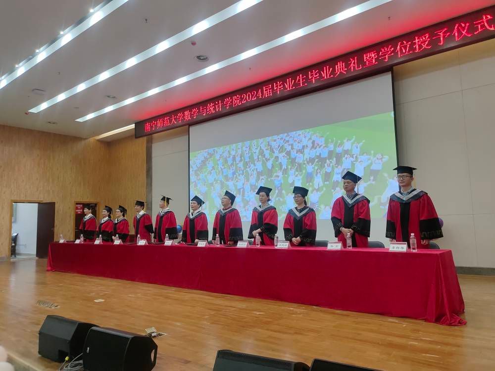 夏日蝉鸣,骊歌唱响,6月30日上午,数学与统计学院在武鸣校区图书馆报告厅举行2024届毕业生毕业典礼。该院领导班子全体成员、学术委员会成员、各系主任、2020级班主任、辅导员老师及2024届全体毕业生现场参加毕业典礼。