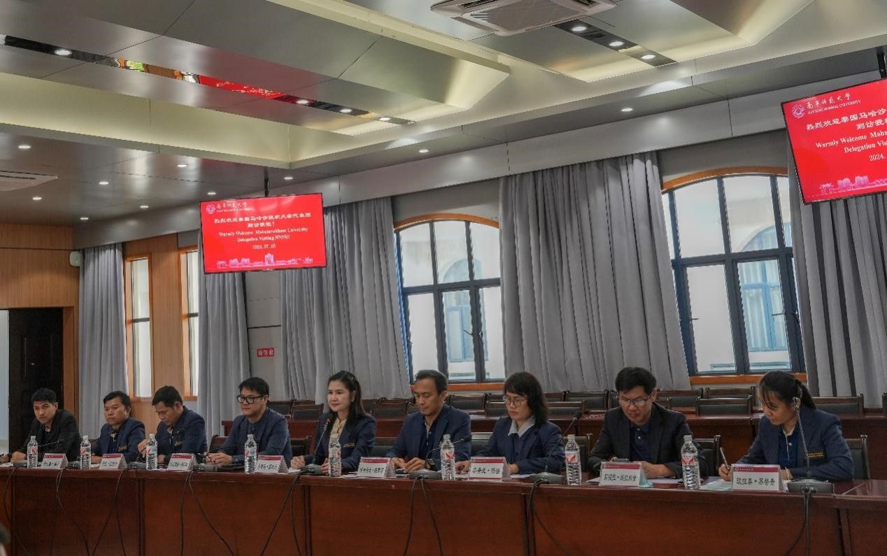 7月3日上午,泰国马哈沙拉坎大学代表团到我校交流访问。国际交流合作处(国际教育学院)、图书馆、计算机与信息工程学院、新闻与传播学院相关负责人在武鸣校区行政楼127会议室接待了泰国马哈沙拉坎大学代表团。