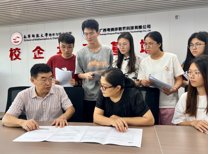 为了进一步推动考阅评校企合作基地的发展,7月7日,深圳外国语学校袁智斌教授到数学与统计学院与广西考阅评教育科技有限公司校企合作基地指导工作。