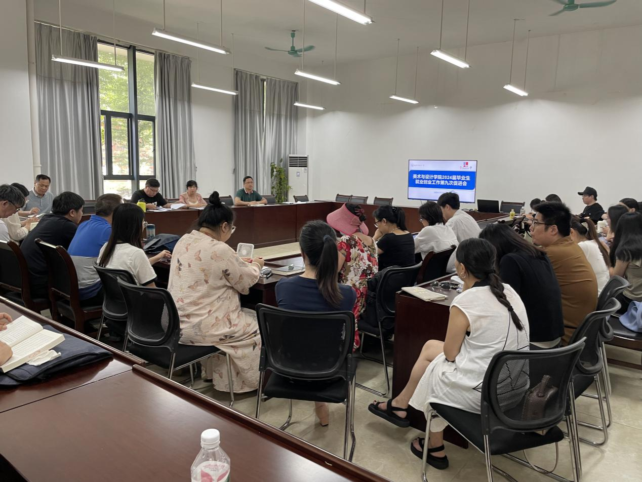 7月6日下午,美术与设计学院在美设楼116会议室召开2024届毕业生就业创业工作第九次促进会。会议旨在进一步分析当前就业形势,总结经验,查找不足,并明确后续工作方向,确保毕业生高质量就业。学院领导班子全体成员及全体教职工参加会议,会议由学院党委陈传忠副书记主持。