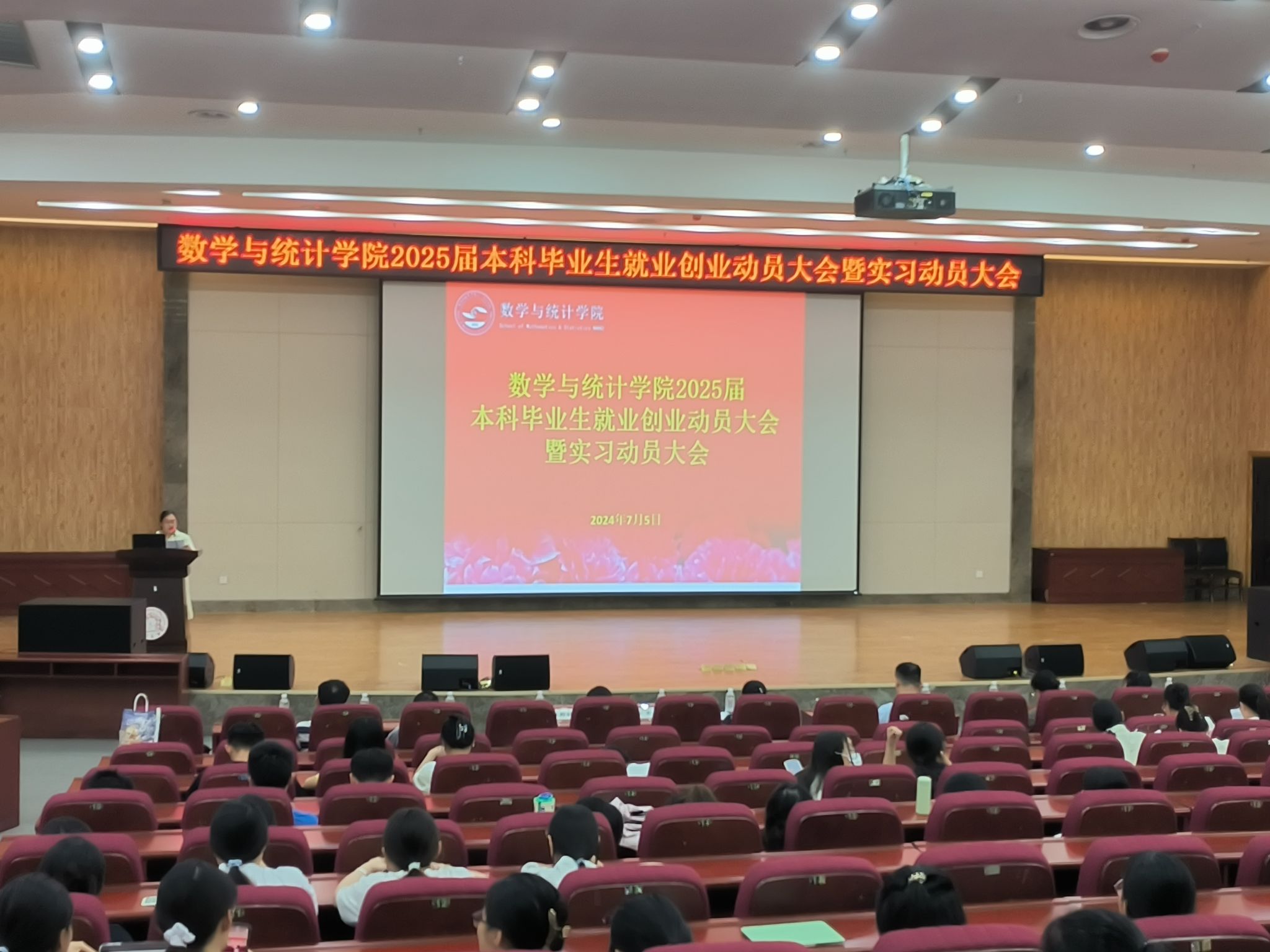 7月5日,数学与统计学院在武鸣校区图书馆报告厅举办2025届本科毕业生就业创业动员大会,数学与统计学院党委付进副书记、韦扬江副院长、2021级班主任、全体辅导员以及2025届本科毕业生同学参加本次会议。