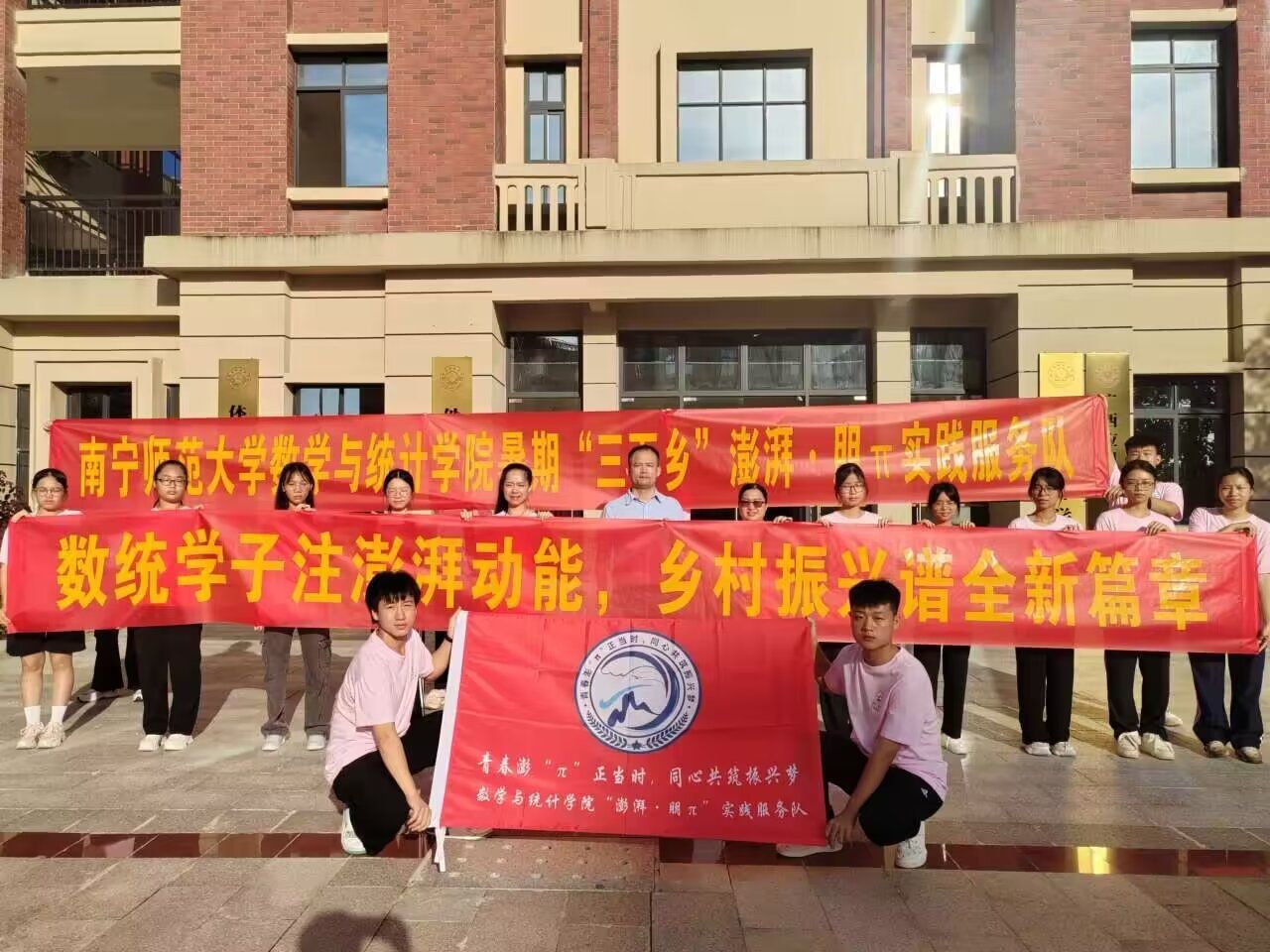 出征仪式完成后,“澎湃·朋π”实践服务队将出发南宁市武鸣区马头镇开展为期7天的乡村振兴服务活动。大学生暑期“三下乡”实践活动的出征号角已经吹响,相信踌躇满志的数统学子将携手并进,投入到火热的社会实践活动中去,以实际行动诠释铮铮誓言,在社会实践中谱写激昂高亢的青春之歌。