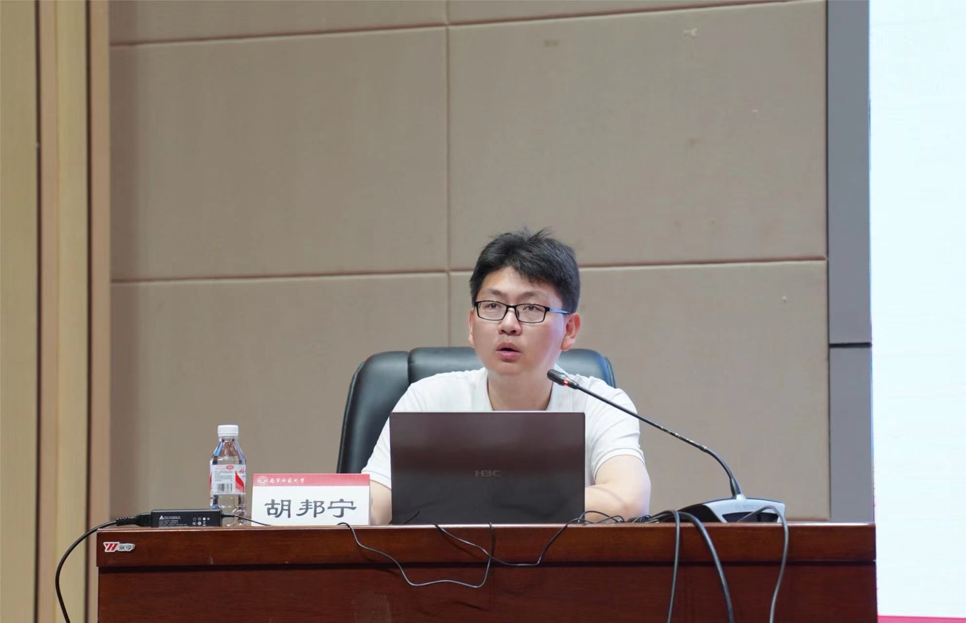 随后,学员们在南宁师范大学五合校区文综楼114报告厅接受辅导员工作实务培训。南昌大学人文学院党委副书记、“最美高校辅导员”胡邦宁副教授为学员们作了题为“新时代团支部建设和团干部培养”的专题报告。胡邦宁副教授从“是什么”“为什么”“怎么做”三个维度,深入浅出地与学员们分享新时代团支部建设和团干部培养的内容。胡邦宁副教授强调,新时代辅导员要做立德树人的师者、敢闯会创的学者、永不停息的思者及脚踏实地的行者。郑州大学哲学学院团委书记、“最美高校辅导员”胡波老师作了题为“高校辅导员谈心谈话能力提升思考”的专题报告。胡波老师围绕高校辅导员谈心谈话的本质特点、原则与时机、前提与准备及方法与技巧四个方面进行分享。胡波老师强调,新时代高校辅导员要有爱心、耐心、真心及责任心,推动立德树人根本任务真正落地落实。