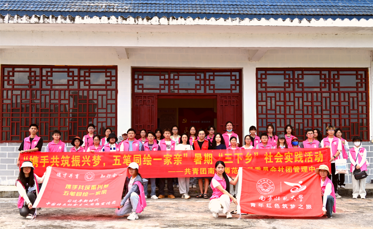 为深入贯彻习近平新时代中国特色社会主义思想,积极响应习近平总书记对新时代青年“奋力书写为中国式现代化挺膺担当的青春篇章”的殷切期望,7月9日,我校学生社团管理中心、各学生社团代表组成的“携手共筑振兴梦,五笔同绘一家亲”习近平新时代中国特色社会主义思想宣传实践团赴广西河池市罗城仫佬族自治县龙岸镇开展暑期“三下乡”社会实践活动。