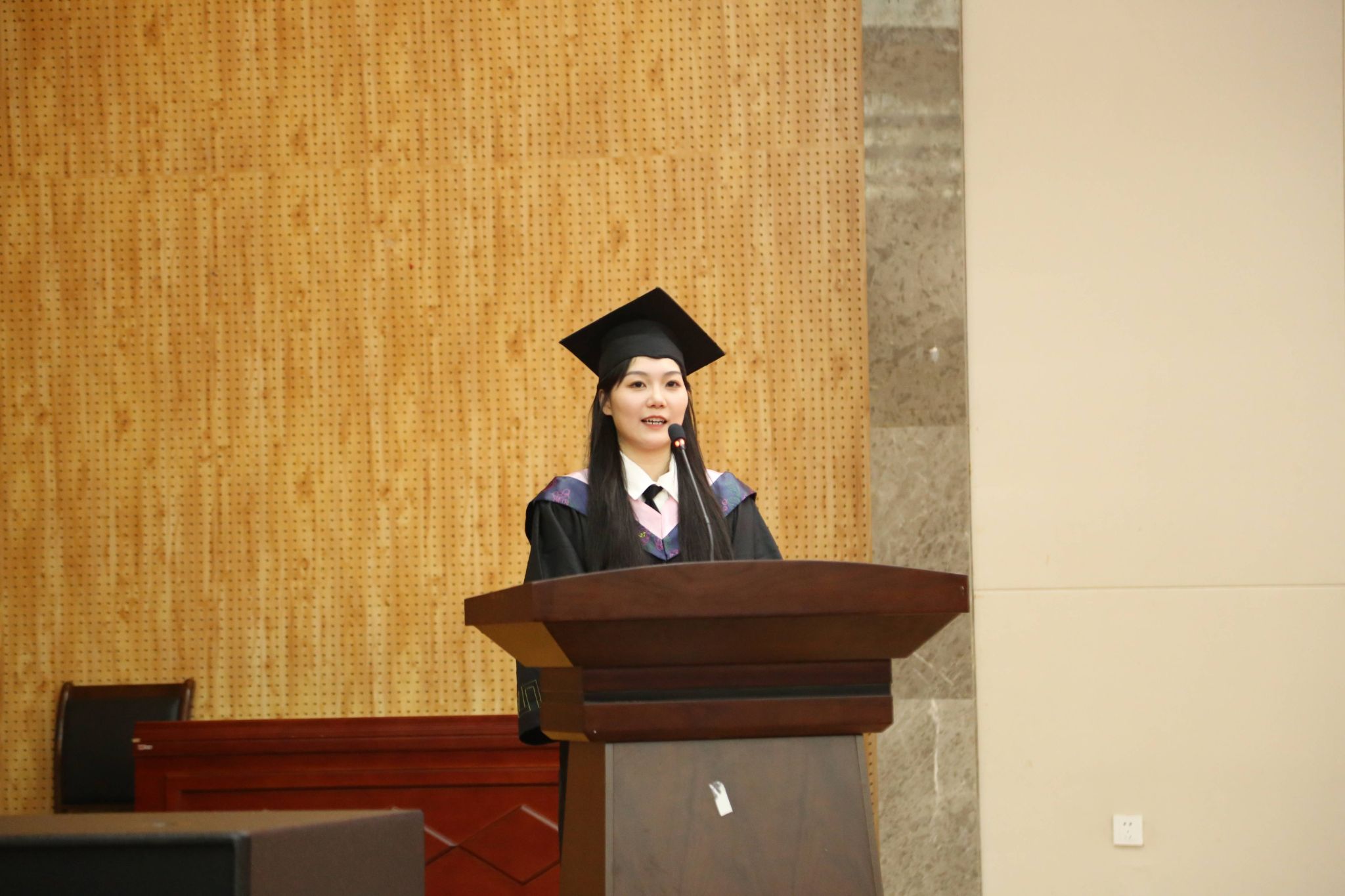 毕业生代表林东仪发言,表达了对学校、老师和同窗的感谢,总结了四年求学生涯的所获所得,同时祝愿同学们云程发轫,万里可期。