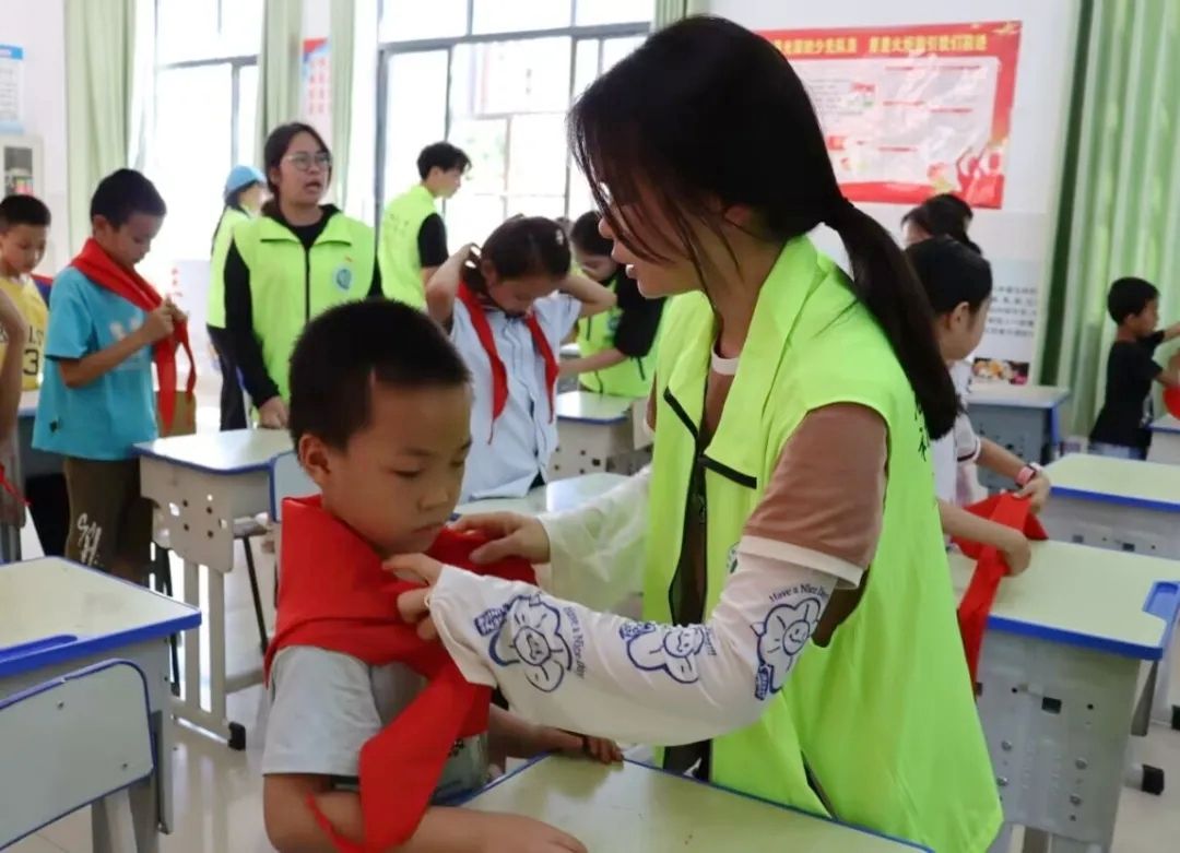 活动伊始,实践队的老师们以饱满的热情,为孩子们带来了一堂别开生面的少先队知识课。他们通过图文并茂的PPT展示、生动有趣的故事讲述以及互动问答环节,深入浅出地讲解了少先队的光荣历史、崇高宗旨以及少先队员应知应会的“六知六会一做”内容。课堂上,实践队的成员们亲身示范,一对一地为孩子们佩戴上鲜艳的红领巾,并耐心指导他们如何正确系好红领巾,同时讲述红领巾背后的深刻含义和象征意义。让孩子们对少先队组织的认识从模糊变得清晰而深刻。
