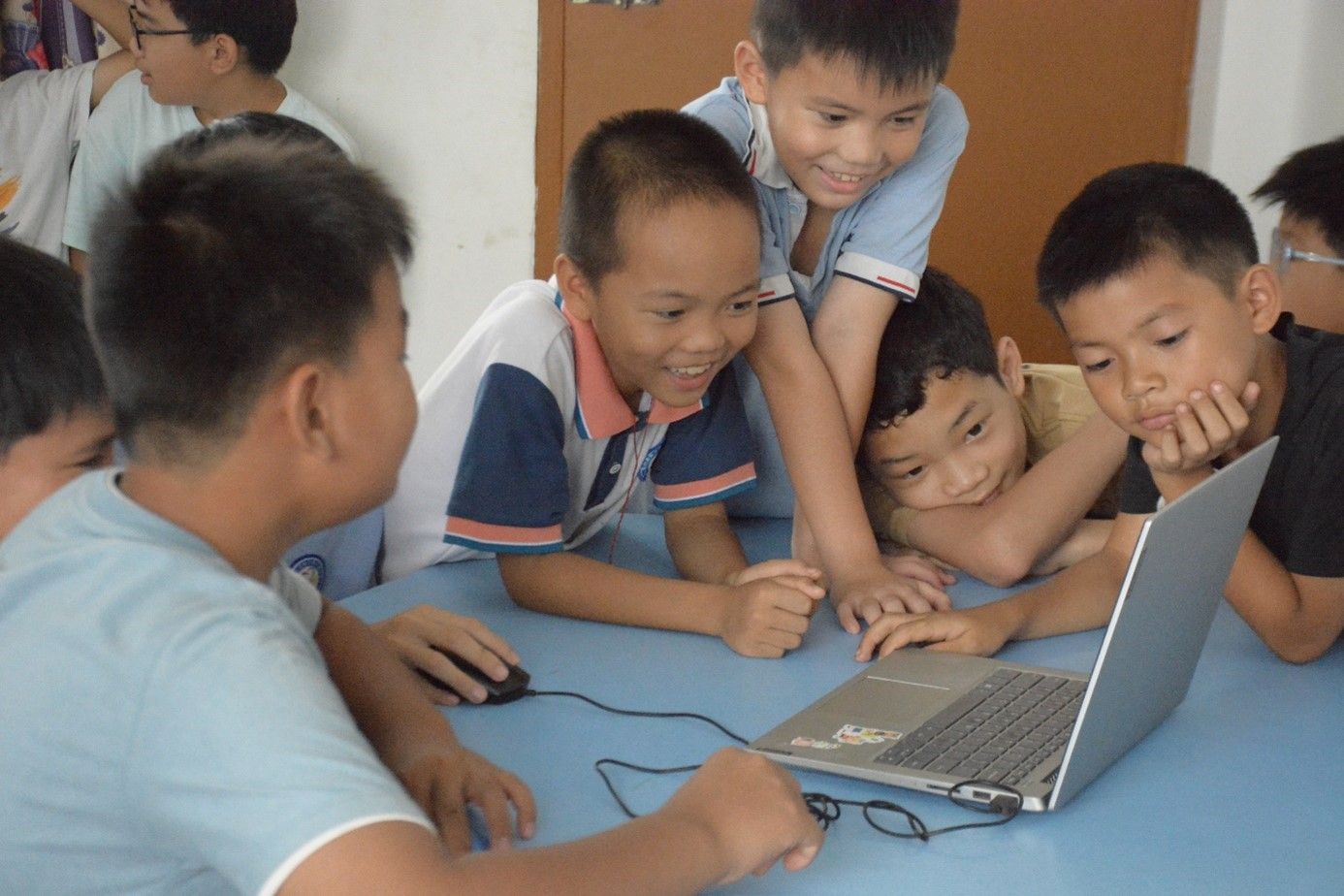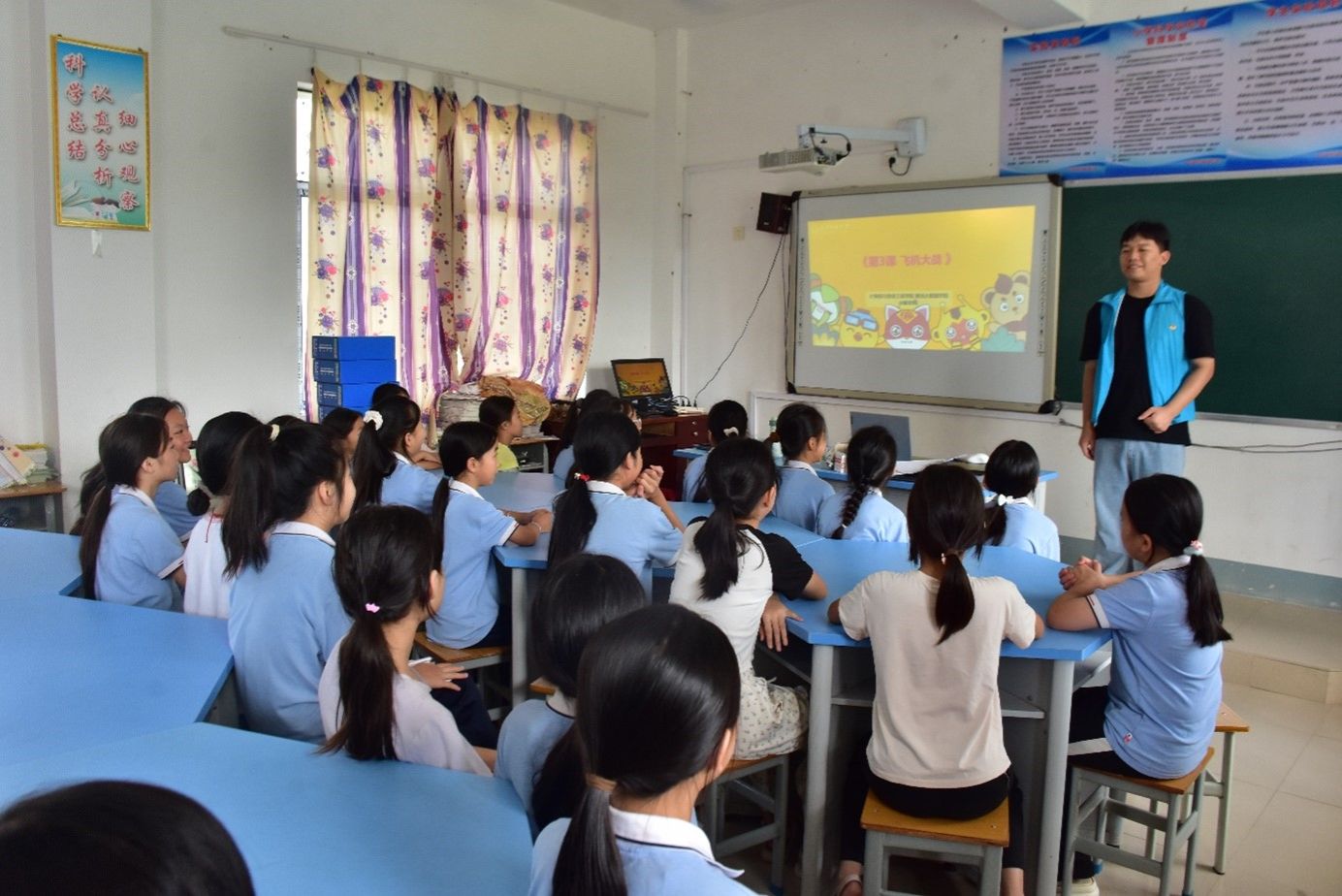 7月17日,计算机与信息工程学院/曙光大数据学院暑期“三下乡”“翔鹭”智汇民族实践团队在南宁市马山县林圩镇合理小学开展Codemao简单编程体验课。