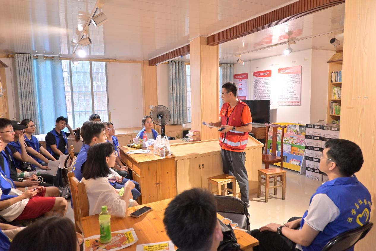 上午,团队集合完毕后整队出发,经历了4个多小时的路程,队伍来到柳州市三江侗族自治县平流村。在简单的休整后,平流小学校长吴勇芬和平流村驻村第一书记张祥勇亲切接待团队,并表示感谢团队的到来,期待在接下来七天的实践活动中,大家能够互相学习,共同进步。下午18:30,志愿者们在驻村第一书记张祥勇的带领下,参观了平流村的党群服务中心、“农家书屋”以及“积分超市”,对平流村在乡村治理和乡村振兴进行的新尝试,共同探索乡村治理新模式有了初步的认识和感知。