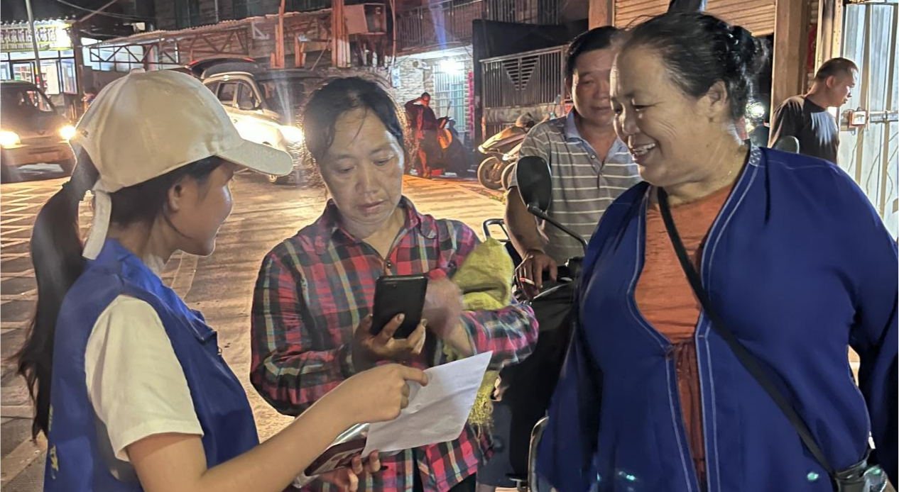 晚上19:30,在驻村工作队员和村小组组长的带领下,志愿者们分组入户走访,开展“三下乡”志愿服务的活动宣传,并且在村委指导下向村民推广“村级服务平台”。