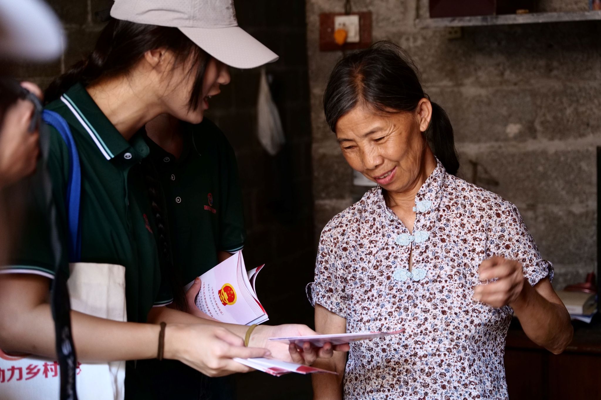 实践团成员深入那桃乡各村落开展推普调研活动。他们走进村民家中,与村民们进行亲切的交流,详细了解当地普通话的使用情况和普及率。在与一位壮族阿婆的交谈中,队员们了解到她平时与外界交流较少,普通话的使用仅限于简单的日常用语。于是队员们耐心地为阿婆讲解学好普通话的重要性,通过一对一的辅导教其学会普通话的正确发音,并鼓励她在日常生活中多听多说。