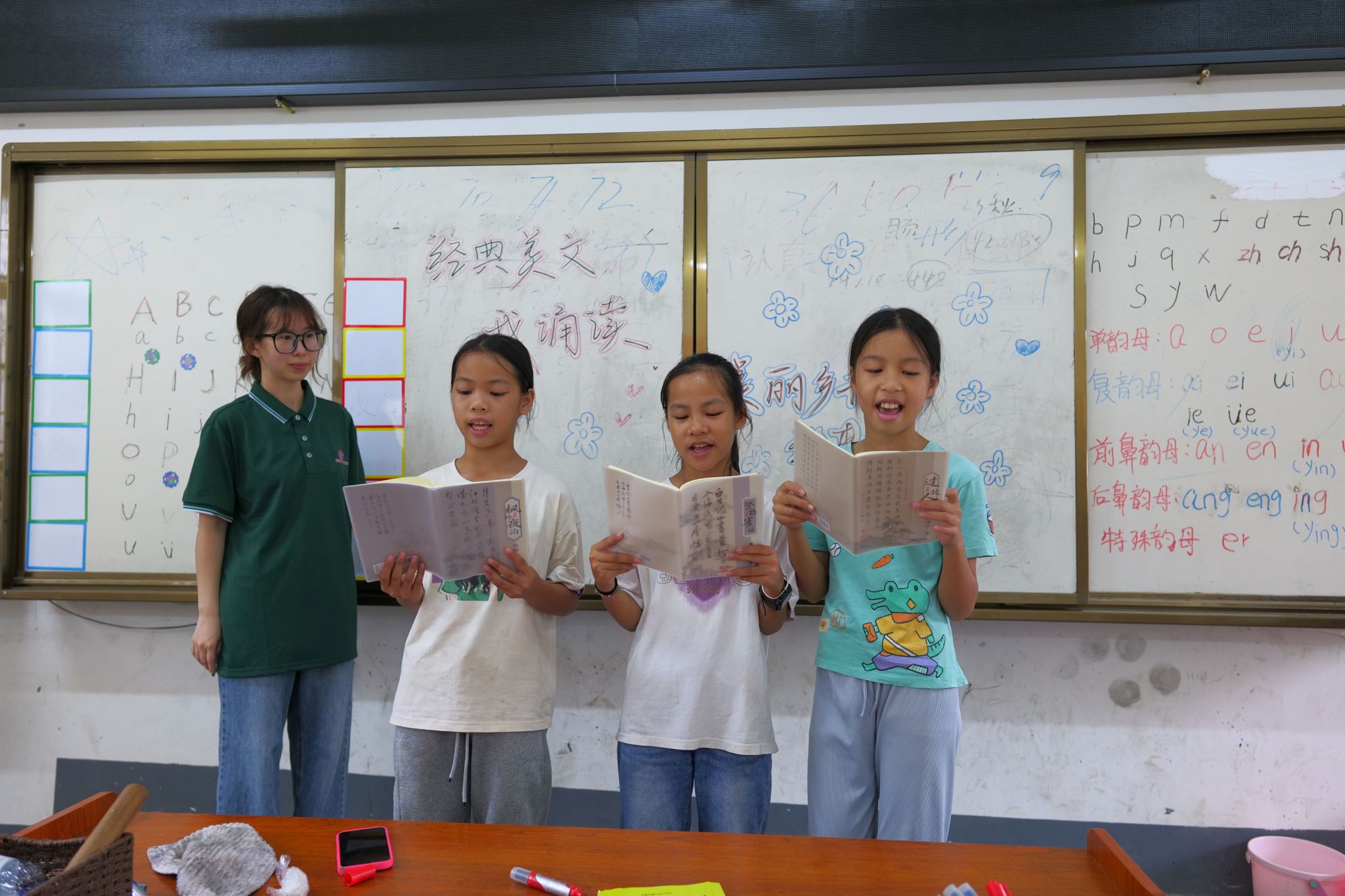 实践团成员在那桃乡民安小学开展了生动有趣的推普课堂。通过趣味游戏、绕口令比赛、儿歌朗诵等形式,激发小朋友们学习普通话的热情。在三字经诵读环节,小朋友们字正腔圆地念着:“性相近,习相远。”那专注的神情可爱极了,抑扬顿挫之间溢出对中华民族优秀传统文化的热爱之情。击鼓传花时,拿到花的小朋友需要用普通话讲一个简短的小故事,尽管有些紧张,但在大家的鼓励下依然努力地表达着。在绕口令比赛中,“四是四,十是十,十四是十四,四十是四十……”,让孩子们感受到了普通话发音的微妙之处,教室里不时传出欢快的笑声。在谈到“我的梦想”时,小朋友们用最淳朴的话语诉说着自己的梦想,尽显童真。寓教于乐,文字的正确读音在学习、游戏中得到了强化,热闹的场景也让整个教室充满了活力。
