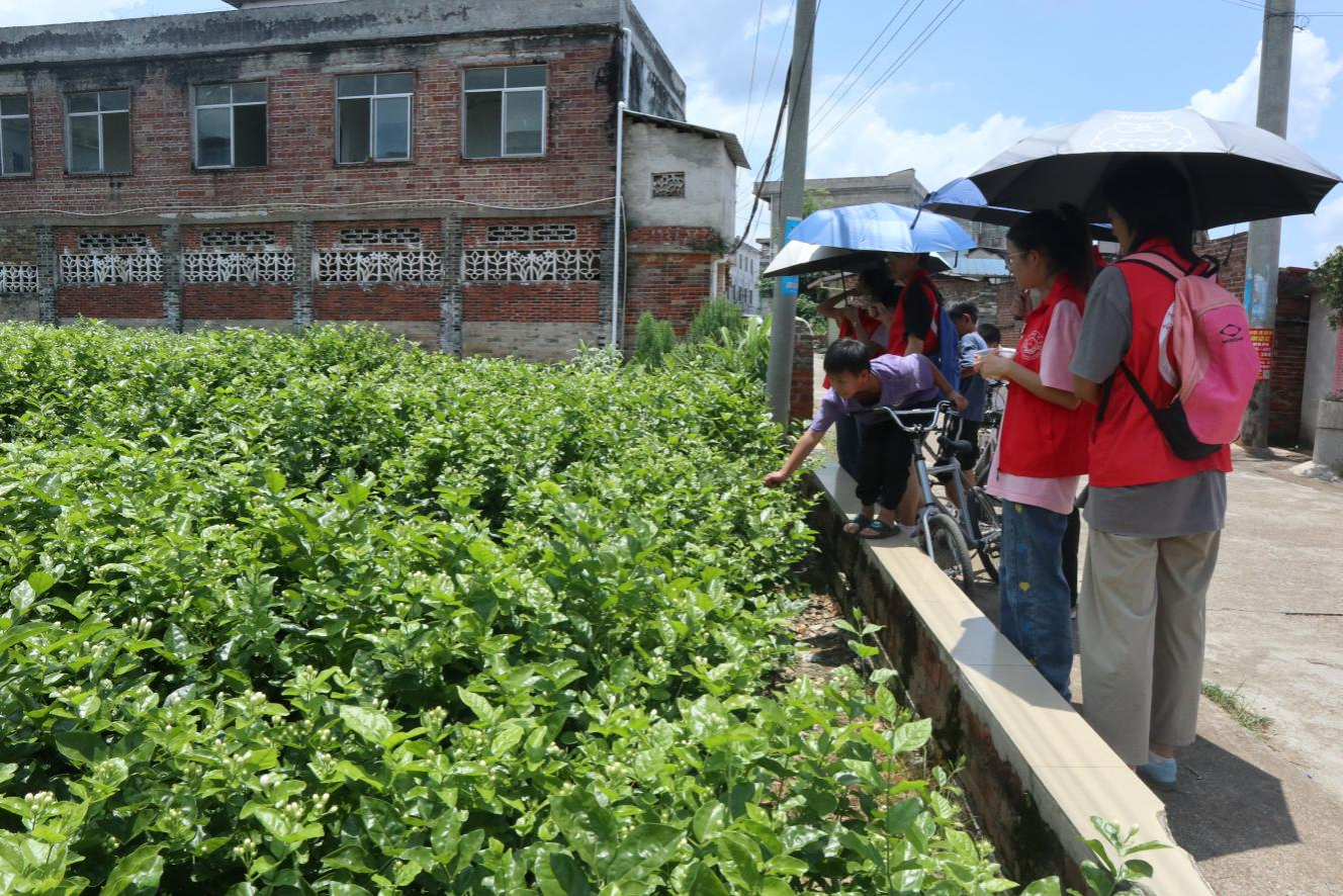(实践团前往横州市莲塘镇茉莉花地进行实地考察)