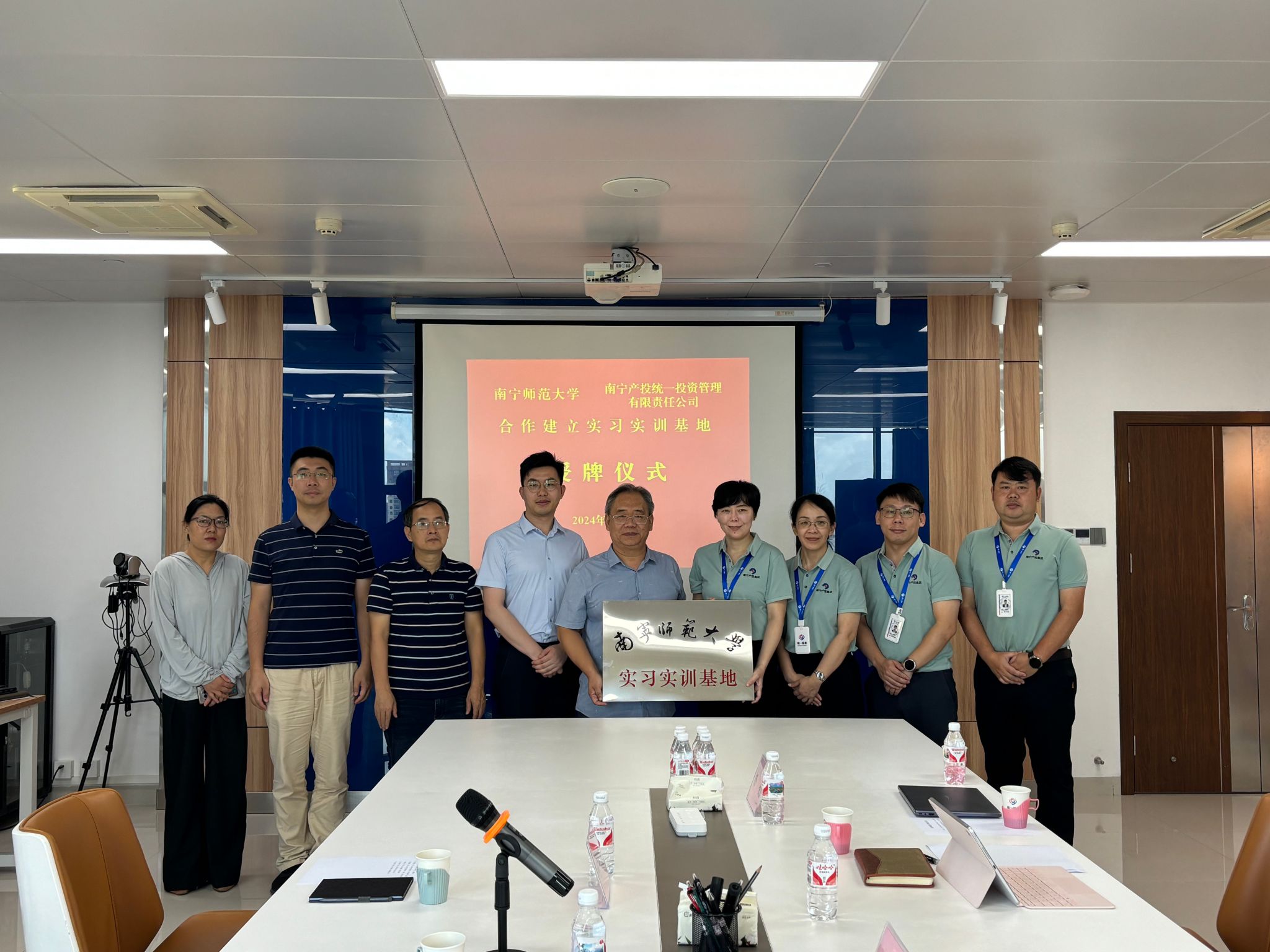 在南宁产投统一投资管理有限责任公司,韦海鸣一行与该公司董事长、学院优秀校友尤志婷及该公司领导、相关部门负责人举行了座谈会。调研组认真了解企业发展概况、用人需求,介绍了学院毕业生资源,分析了学院毕业生与公司需求配匹度,并就发挥公司资源帮扶学院2024届毕业生就业进行了深入探讨。双方还就进一步加强党建领域交流,优化学生实习、产学研合作等进行了交流。会后,双方举行实习实训基地授牌仪式,调研组还参观了南宁产投集团廉政文化教育展。学院党委副书记何一飞、学院副院长丘兆逸、学院教师程皓和辅导员孙国时、李宏晨参加了活动。